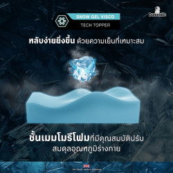 Experience cooling and quality sleep with the comfort innovation of the Dunlopillo Majesta Frost. Designed to recharge your body every morning, it features SNOWTEMP Fabric—an advanced cooling fiber that helps regulate body temperature and the Snow Gel Visco Tech Topper for enhanced cooling. Infused with cooling gel particles, the topper maintains a cool surface while efficiently dispersing heat and moisture. Combined with Visco Tech, an advanced support layer that offers 4x better pressure relief and body-contouring support than standard memory foam, it ensures refreshingly comfortable, full-body relaxation throughout the night.