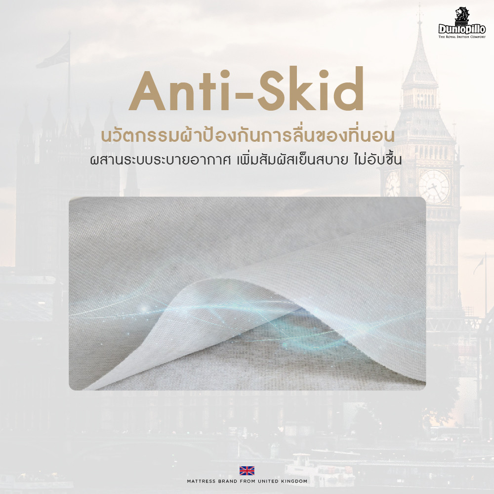 • Anti-Skid The fabric that attaches the mattress to the bed base, which prevents the movement of the mattress, with an air circulation system, ensuring a moisture-free and anti-dust mite.