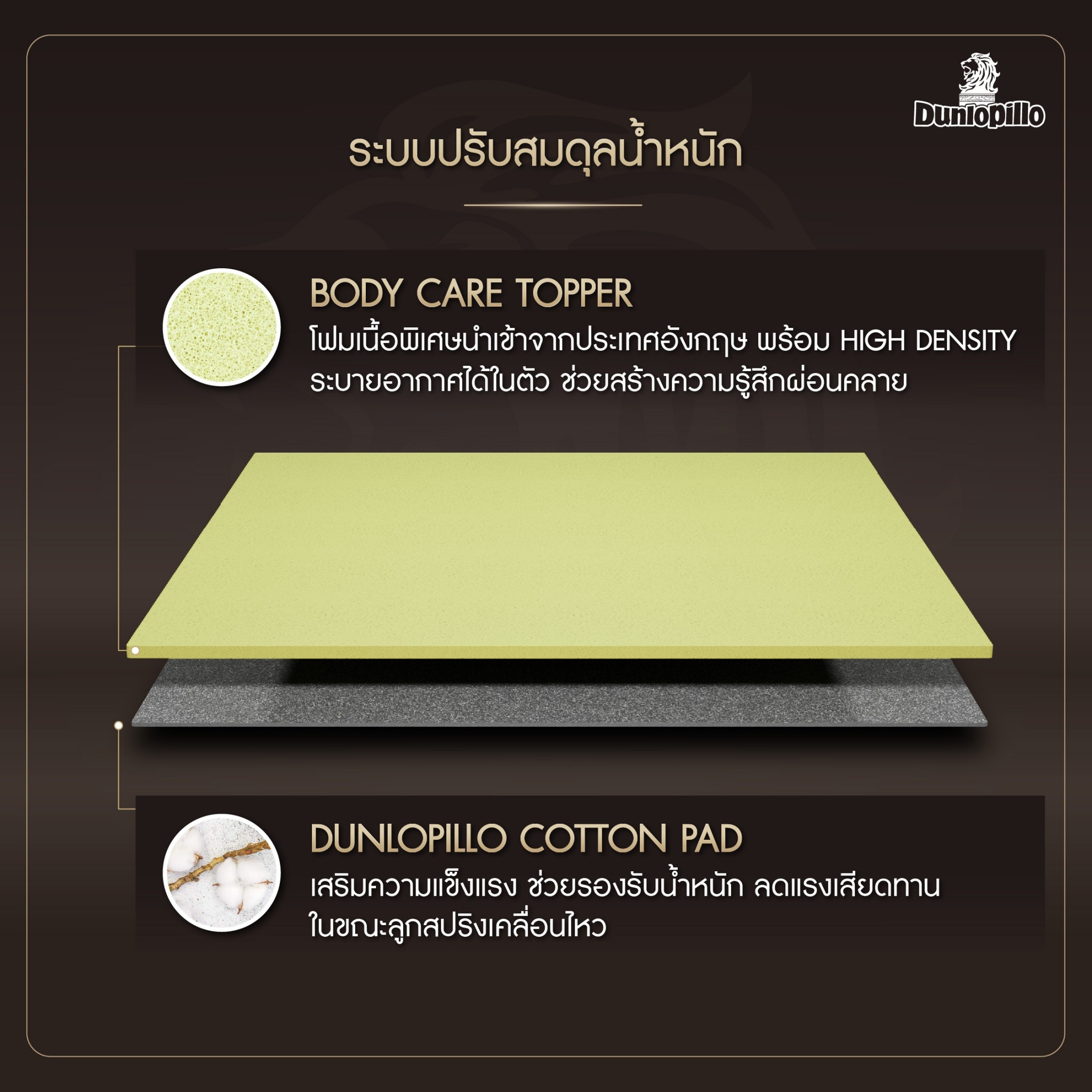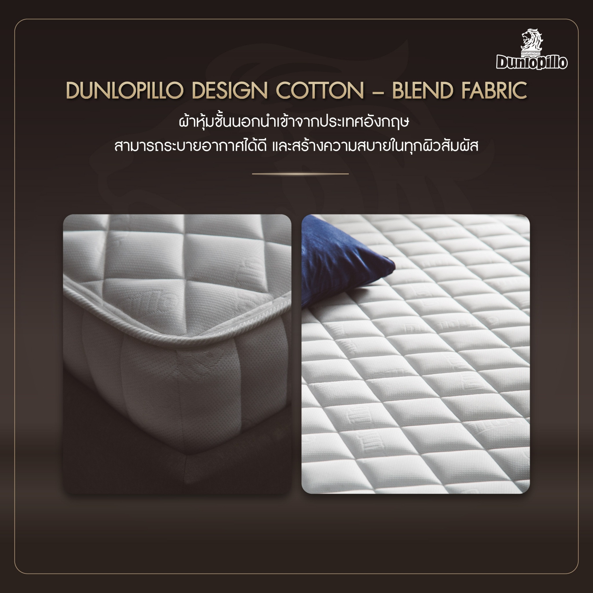 Dunlopillo (Thailand) is one of the leading mattress manufacturers, importers and exporters in the bedding industry. Originally established in the United Kingdom with British quality, Dunlopillo has been in the market of mattresses for over 100 years and recognized by consumers all over the world.