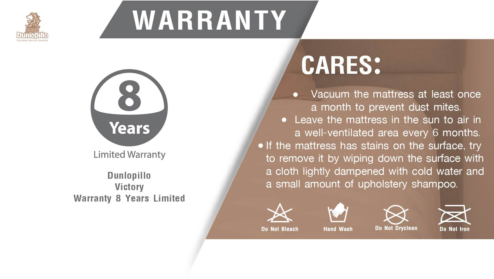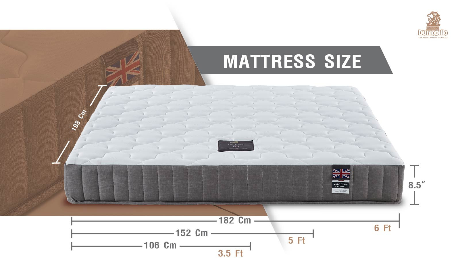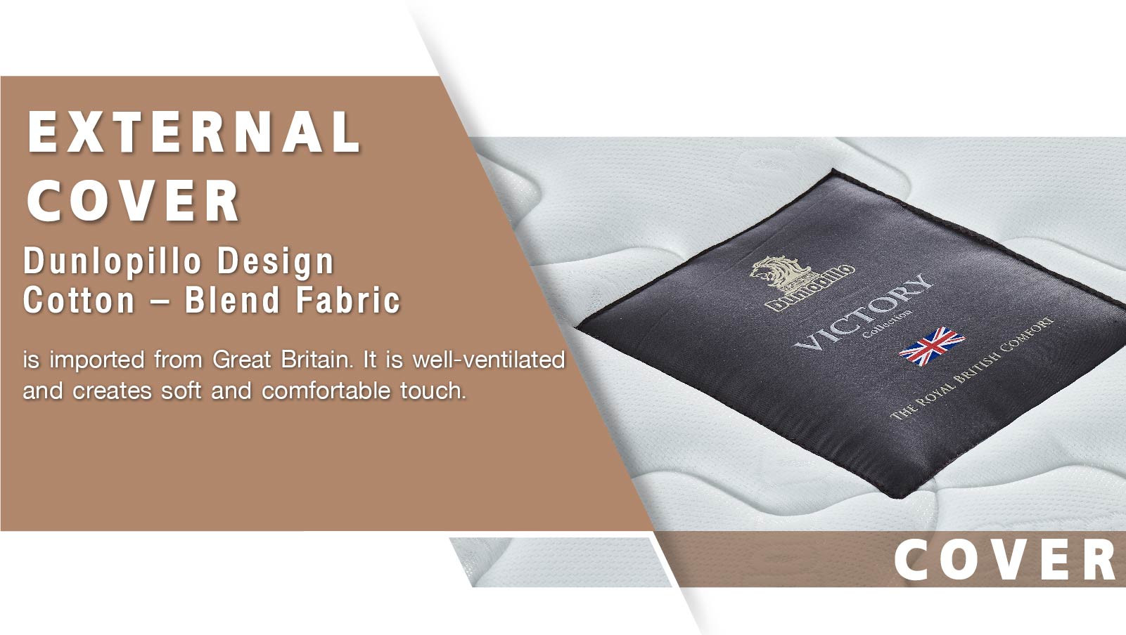 Dunlopillo Design Cotton – Blend Fabric is imported from Great Britain. It is wellventilated and creates soft and comfortable touch.