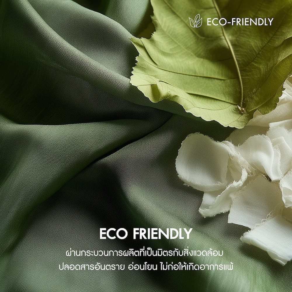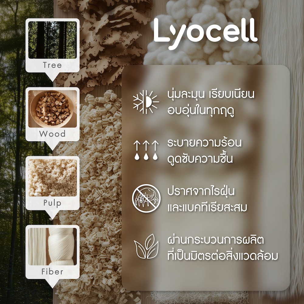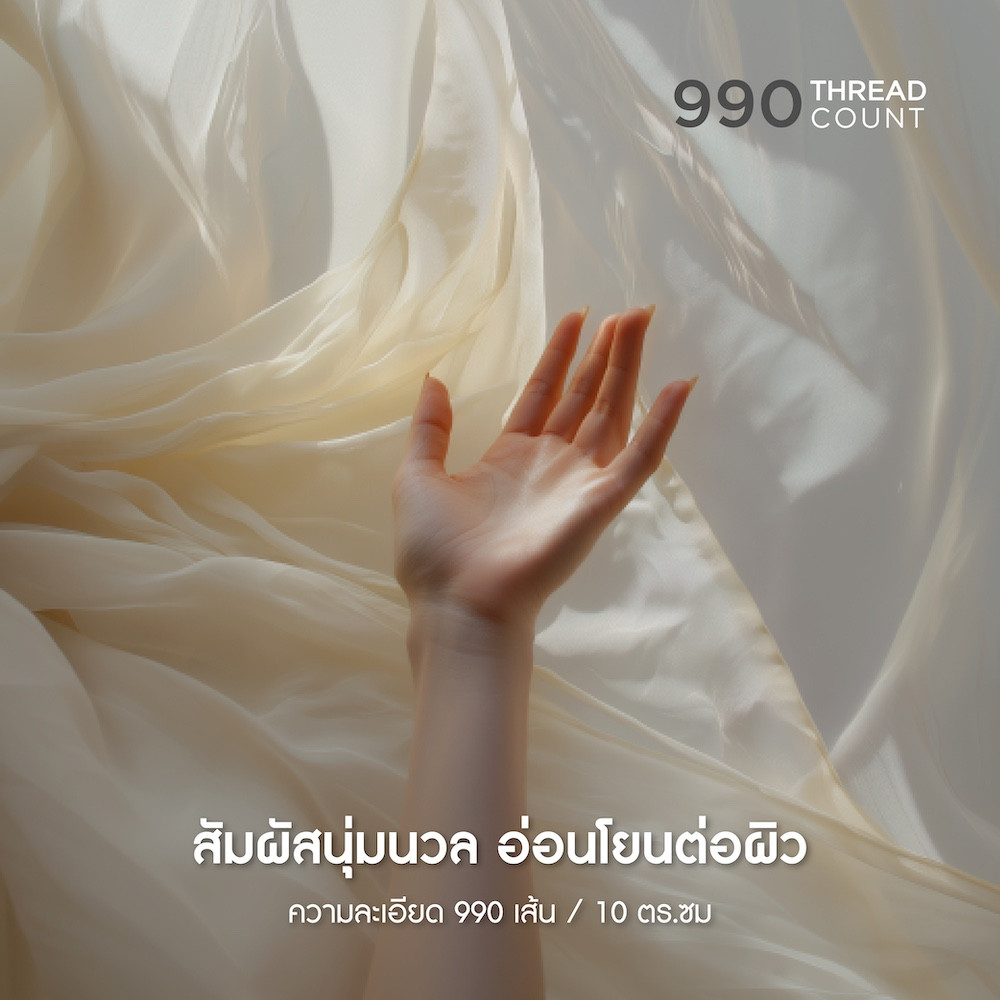 Crafted from high-density Lyocell fabric with 990 threads per 10 sq.cm., made through an eco-friendly process that extracts natural cellulose from wood. The fabric offers a silky-smooth touch, 2x softer than regular fibers and provides excellent breathability for cooling. It is also highly durable, resistant to wrinkles and gentle on the skin.