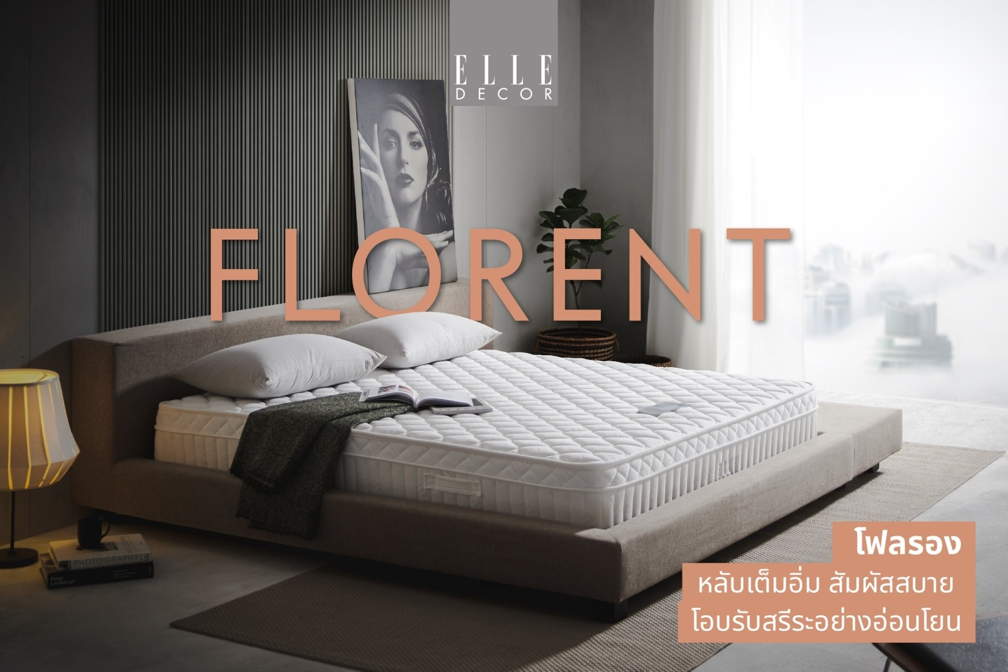 สัมผัสค่ำคืนพิเศษและความทันสมัยของกรุงปารีสกับ ที่นอน ELLE Decor รุ่น Florent รองรับน้ำหนักได้มากขึ้นด้วยระบบสปริง Elle Free-Coils ที่มีประสิทธิภาพด้านการโอบรับสรีระอย่างอ่อนโยน สัมผัสสบายอย่างสมดุล พร้อม Elle HD Performance Foam ที่ช่วยกระจายน้ำหนักและสลายแรงกดทับ ลดอัตราอาการปวดเมื่อยได้อย่างดีเยี่ยม
