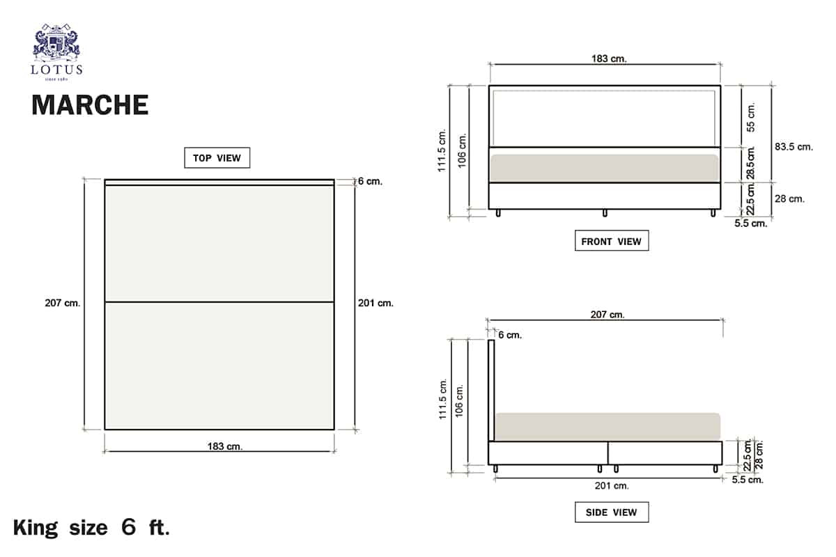 New Bed frame model Marche from Lotus. Highlighted with Blending timeliness of classical theme with trendy lifestyle of the modern day. Available with 3 sizes 3.5 ft., 5 ft., 6 ft. Sleep safe with LOTUS MATTRESS.