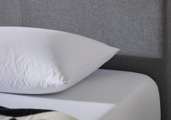 The headboard of the Perrier platform bed exudes a luxurious simplicity, embodying a modern style that complements any bedroom design. Enhanced with an upholstered technique with HD foam padding beneath the bed fabric cover, available in two styles: Woven Fabric and PU Leather, offering an enhanced soft touch and relaxation experience.