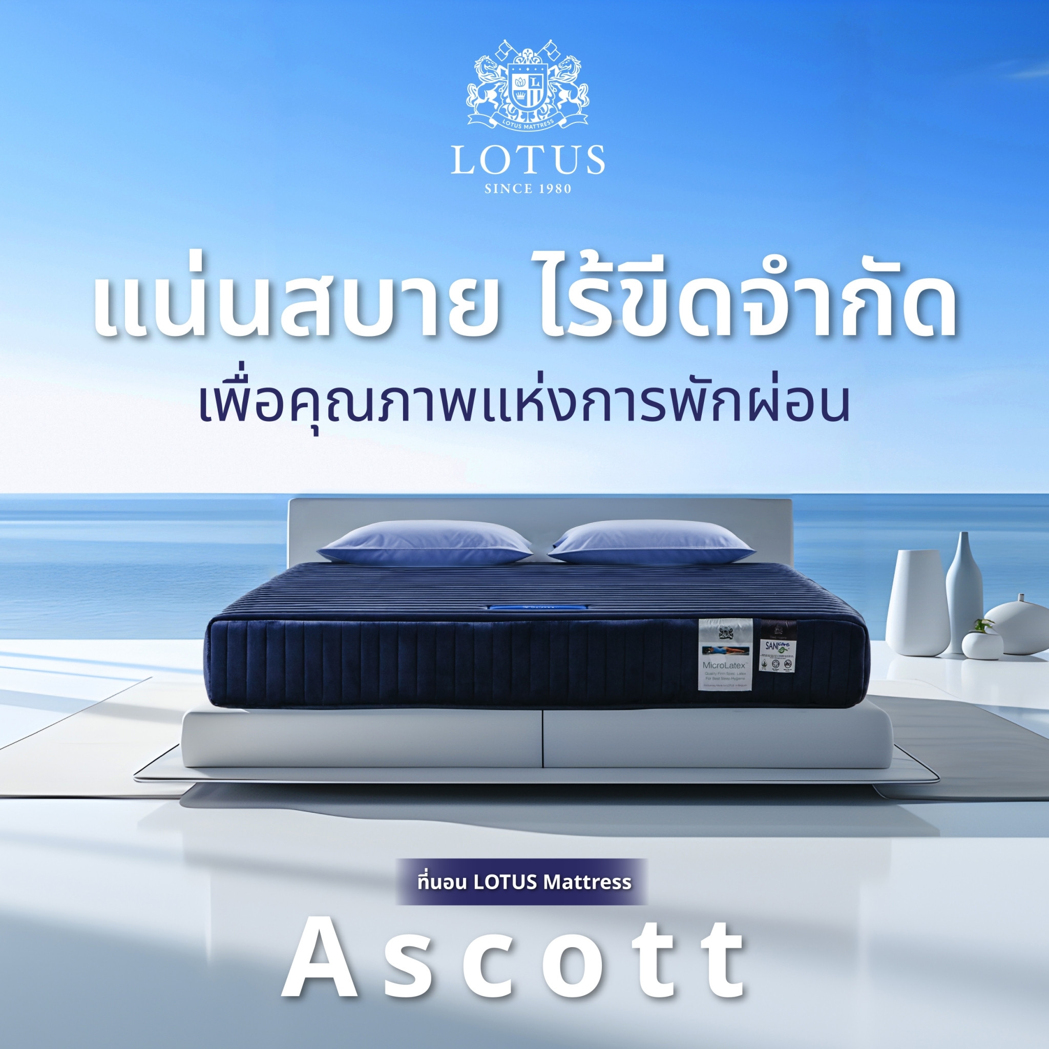 Latex Mattress model Ascott from LOTUS. Highlighted with Miracle Foam® Base core 5” (12.5 cm.) – High grade extreme-compressed foam