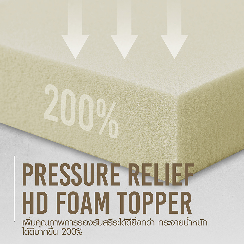 It facilitates efficient blood circulation, devoid of numbness and discomfort, enhance your sleep comfort with the Massage Contour Pad layer that has a Massage Convoluted surfaceand relieves stress points. The HD Comfort Foam is densely designed, enhancing the quality of posture support, and ensuring every touch point during sleep is perfectly accommodated.