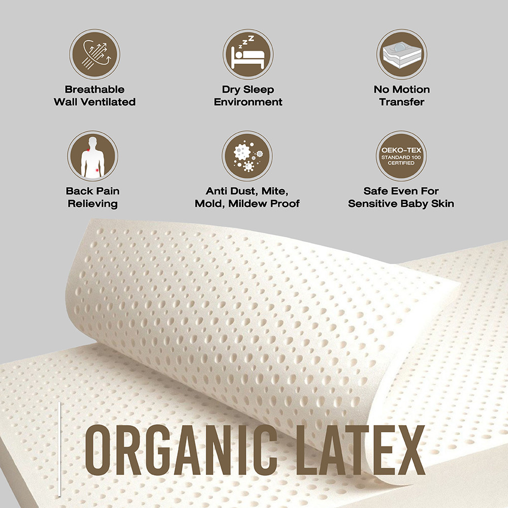 - The Organic Latex is 100% natural, showcasing a porous, honeycomb-like texture, combined with LOTUS MATTRESS signature Opened-Cell structure, providing unparalleled comfort. It gently cradles every contour while supporting the spinal alignment. This Opened-Cell structure allows for efficient airflow, offering a cool sleep experience and is resistant to dust mites and bacteria.