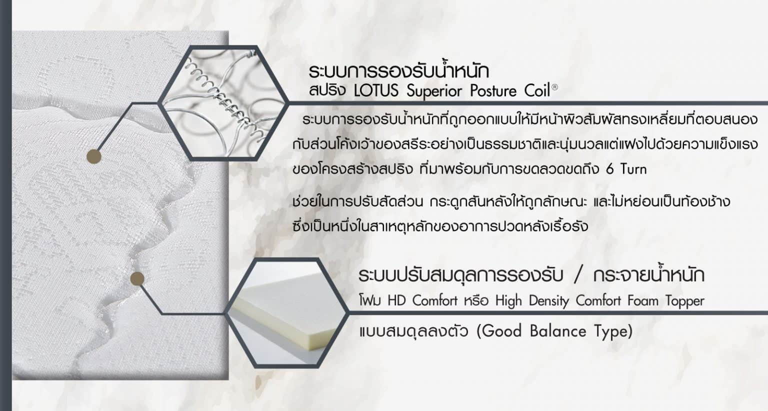 Foam Spring Mattress model O-Season Deluxe I from LOTUS. Highlighted with Designed to suit different body shapes
