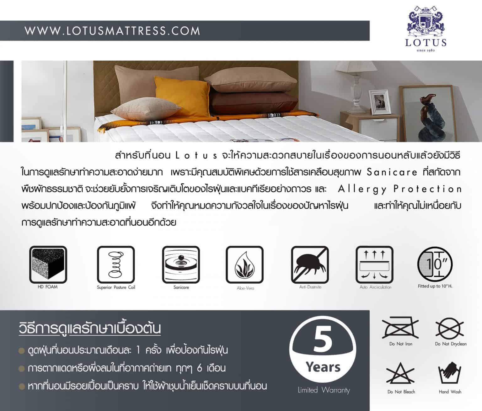 Lotus mattresses – Thai brand with world-class quality featuring Belgian Microlatex innovation. 10-year warranty, free delivery at Mattress City.