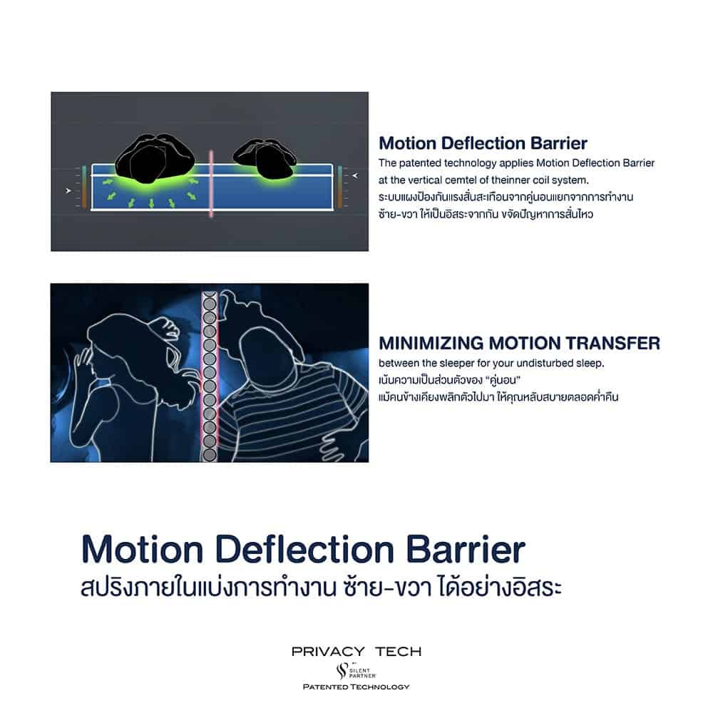 Primary personal zone divides the mattress into left and right side by vertical Motion Deflection Barrier in the center of the system to minimize motion transference between both sleepers for your undisturbed sleep.