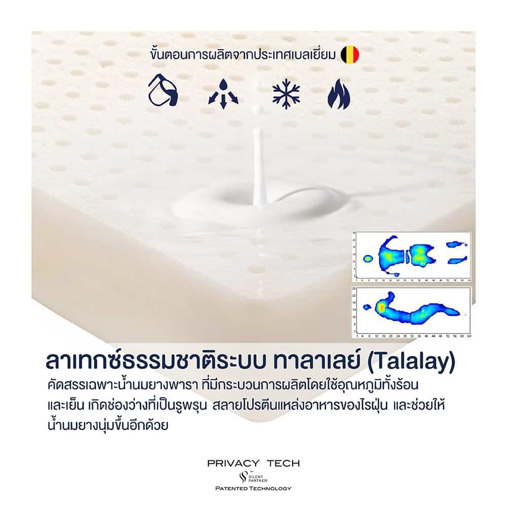Talalay Latex® peel – processed with unique Talalay technology creating opened-cell structure throughout. For perfect hygiene, multiple-washing stages are applied to eliminate unwanted residual and undesirable protein (which is major source of food for dust mites and bacteria).