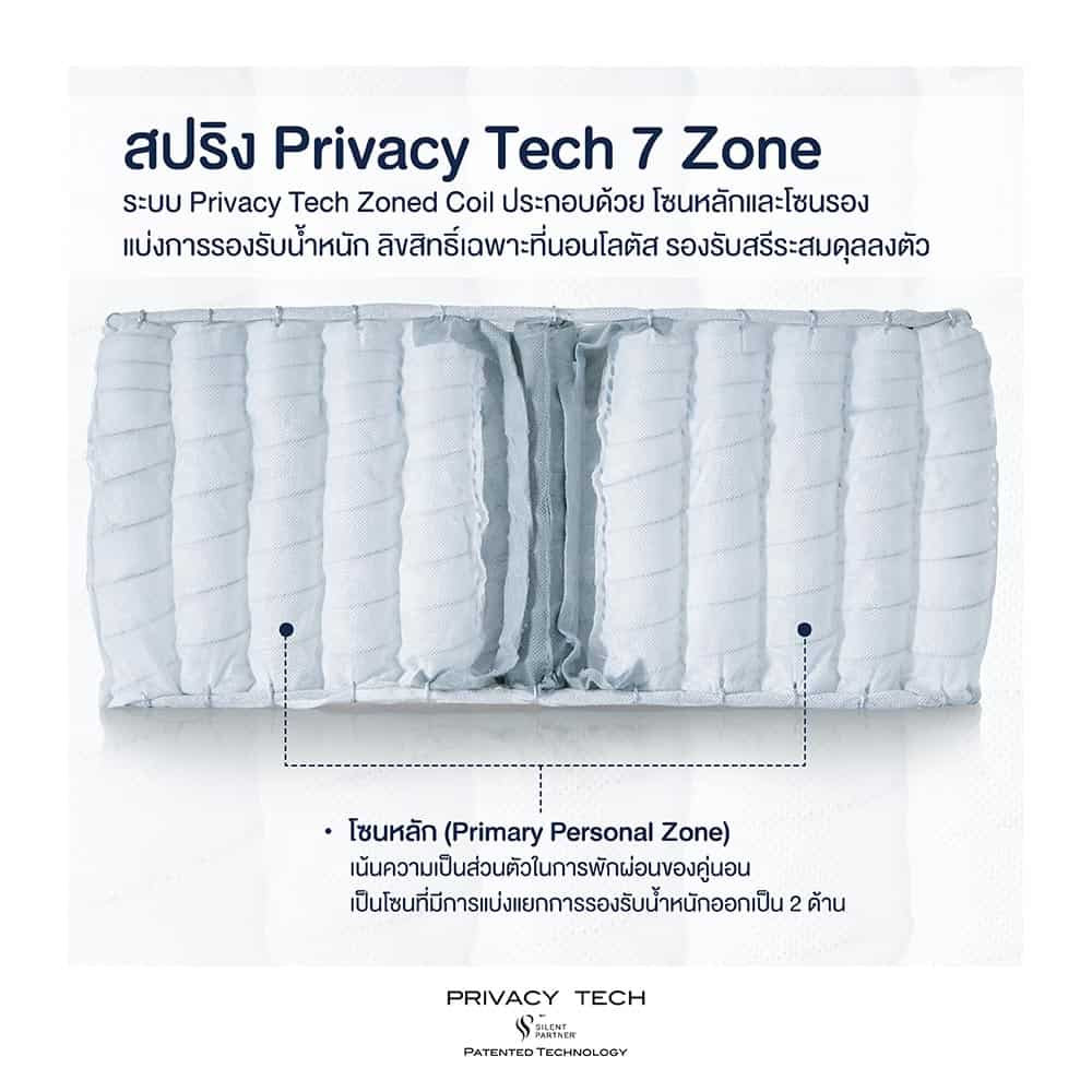 New PRIVACY TECH Zoned Coil is patented sleep technology by LOTUS mattress, designed for the most peaceful rest and relaxation, consisting of primary and secondary zones.