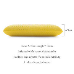 new memory foam & latex pillow from Malouf Zoned ActiveDough® + Chamomile. ActiveDough™, All the benefits of memory foam and latex combined for a completely unique feel that’s both conforming and supportive. Size 16x29inch. Loft 6 inch.