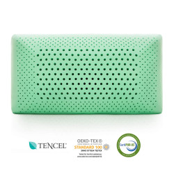 omfort and support meets natural aromatherapy with the Zoned Dough® Peppermint pillow. Plush, curve-conforming Dough® memory foam is infused with real peppermint oil for natural relaxation. Peppermint is known to aid in deep, clear breathing and promote clarity of mind, and peppermint is antimicrobial. A mini spritzer bottle of natural peppermint aromatherapy spray accompanies the King and Queen size pillows to refresh the aroma. Zoned Technology design creates larger holes in the center of the pillow to cradle the head and smaller holes around the edges for superior neck support. A beautiful and soft Tencel™ mesh cover adds the temperature- and moisture-regulating comfort of eco-friendly fabric. Travel size pillow does not include aromatherapy spritzer.