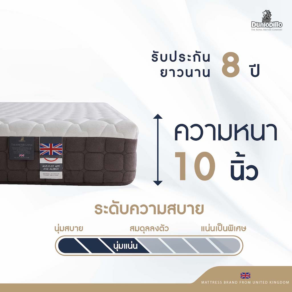 Dunlopillo (Thailand) is one of the leading mattress manufacturers, importers and exporters in the bedding industry. Originally established in the United Kingdom with British quality, Dunlopillo has been in the market of mattresses for over 100 years and recognized by consumers all over the world.