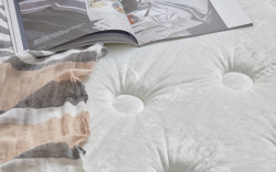 เสริมความนุ่มสบายอีกระดับด้วย FR Latex นวัตกรรมยางพาราไฮบริดที่มีความยืดหยุ่น และสามารถรักษาสมดุลในการกระจายน้ำหนัก ช่วยสลายแรงกดทับและรองรับสรีระได้อย่างสมบูรณ์แบบ มาพร้อมคุณสมบัติในการป้องกันไฟลุกลาม (Fire Retardant) และมอบสัมผัสนุ่มนวลยิ่งขึ้นกับผ้าหุ้ม Dunlopillo Design Cotton - Velour Fabric เนื้อผ้ากำมะหยี่ที่มีความนุ่มลื่น และระบายอากาศได้ดีเยี่ยม ปราศจากความอับชื้นและไรฝุ่น ให้การพักผ่อนในทุกค่ำคืนเย็นสบายไร้ที่ติ ฟื้นฟูสุขภาพได้อย่างเต็มที่