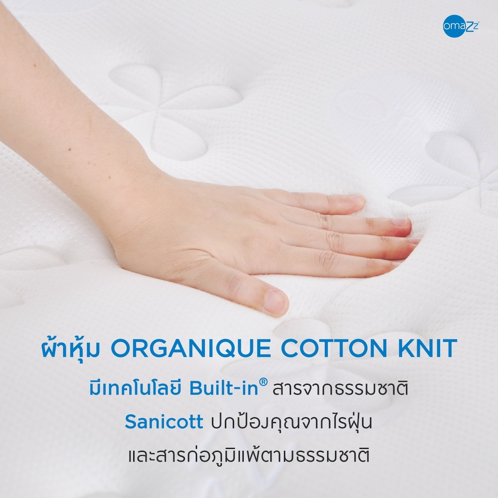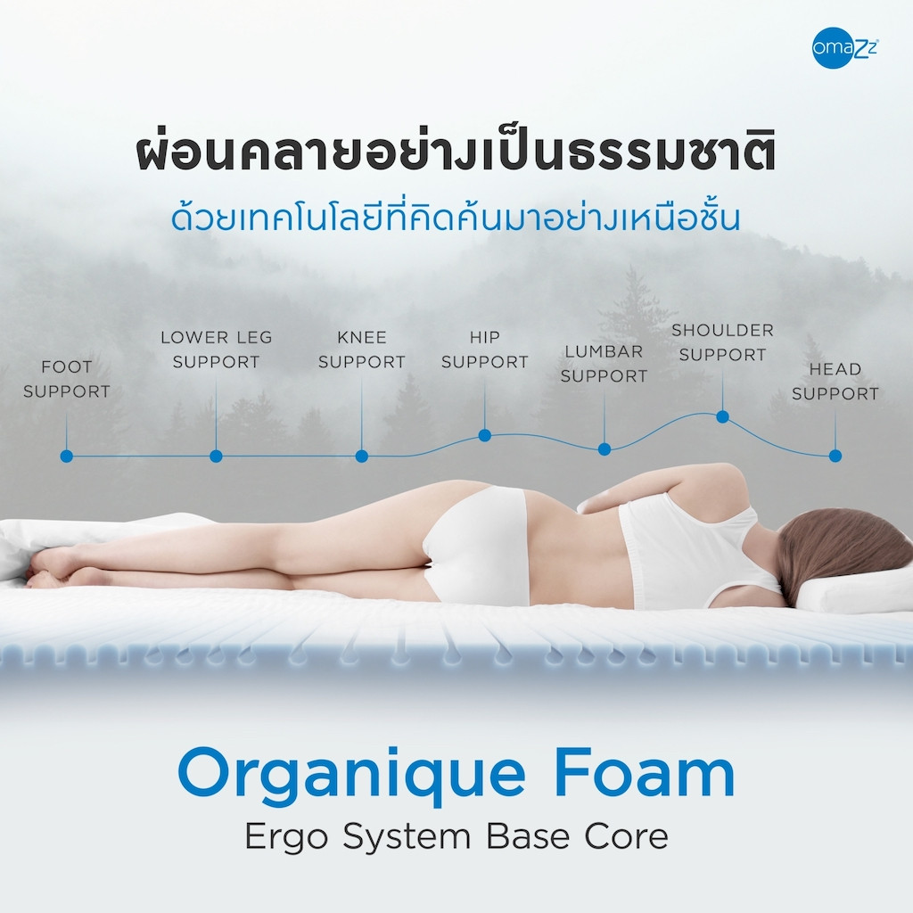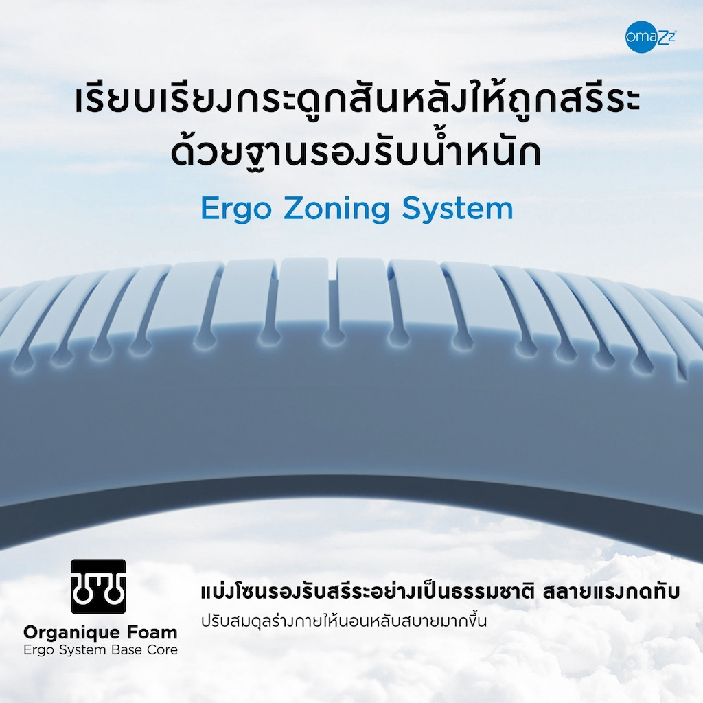 Elevate your sleep with our Organique Foam support system, ingeniously designed with the Ergo Zoning System for tailored weight support that conforms to the body. This thoughtful design ensures spinal alignment, preserving its natural curve, and delivers soothing escape from the day's weariness. Indulge in the luxury of relaxation, redefined by Omazz®.