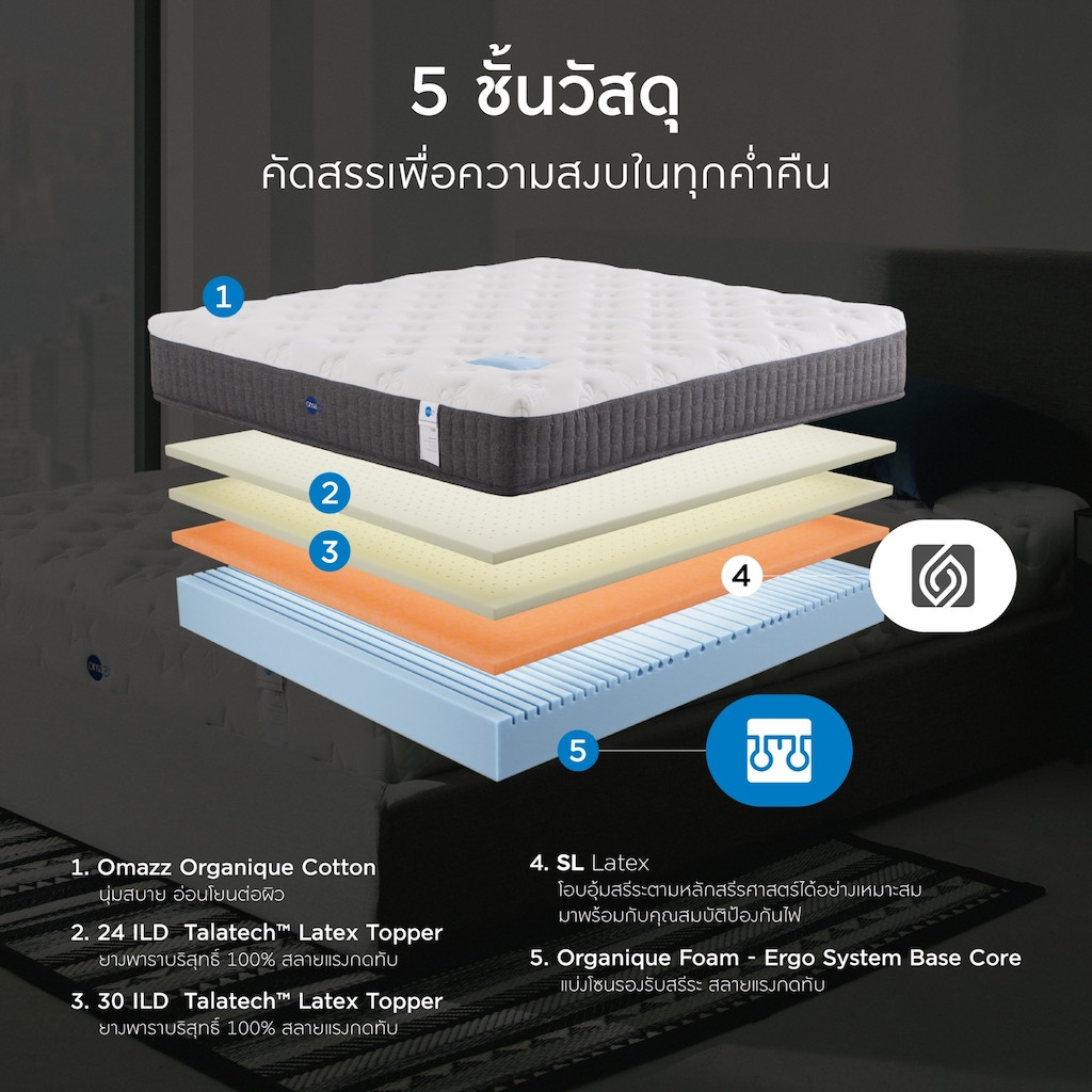 Omazz premium mattresses with authentic Talalay latex – meticulously crafted for restful sleep. 0% installment, free home delivery at Mattress City.