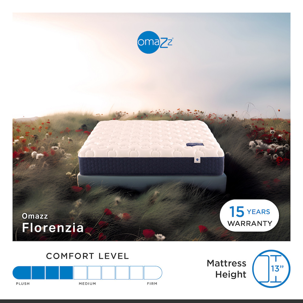 Discover the harmony of nature fused with tranquil comfort in the Omazz® Florenzia Collection. Revel in the gentleness of chemical-free sleep with our Organique Foam, expertly crafted to alleviate pressure points exceptionally well. Elevate your rest with the advanced SL Latex technology, enhancing support and improving weight distribution beyond expectations, along with its fire-resistant properties.