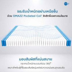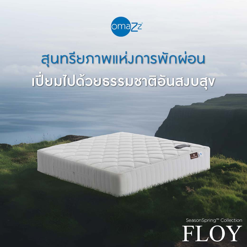 อิ่มเอมใจไปกับการพักผ่อนที่เปี่ยมด้วยคุณค่าจากธรรมชาติพร้อมเทคโนโลยีที่ Omazz ได้สั่งสมประสบการณ์และพัฒนาจนเกิดเป็นนวัตกรรมการฟื้นฟูร่างกายอย่างสมบูรณ์แบบ ที่นอน Omazz รุ่น Floy มอบการรองรับด้วย Omazz Pocket coil พ็อกเก็ตสปริงที่ถูกจัดวางให้การรองรับสรีระมีความสมดุลเป็นธรรมชาติที่สุด มีสัมผัสแน่นสบาย ลูกสปริงทำงานอย่างอิสระ ไร้แรงสั่นสะเทือน และช่วยกระจายน้ำหนักแบบองค์รวม 360 องศา เสริมชั้น Organique Foam Topper โฟมออร์แกนิคที่ช่วยสลายแรงกดทับและโอบรับสรีระในทุกการเคลื่อนไหว ทั้งให้คุณหลับสบายขึ้นอีกระดับด้วย Massage-Tech Organique® foam ที่ได้รับแรงบันดาลใจจากธรรมชาติสู่การออกแบบผิวสัมผัสเป็นลอนคลื่น มอบความรู้สึกเหมือนได้นวดผ่อนคลายสรีระอย่างนุ่มนวลเพื่อเติมเต็มค่ำคืนแห่งการพักผ่อน ที่นอนรุ่น Floy จึงเป็นหนึ่งในคอลเลคชัน SeasonspringTM ที่จะมอบการฟื้นฟูสุขภาพ และช่วงเวลาแห่งความสุข ตามแบบฉบับของ Omazz ได้อย่างสมบูรณ์แบบ