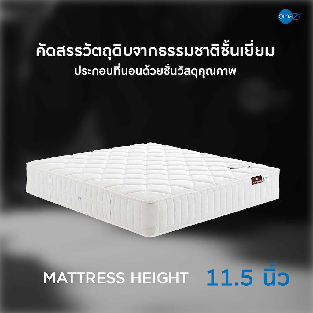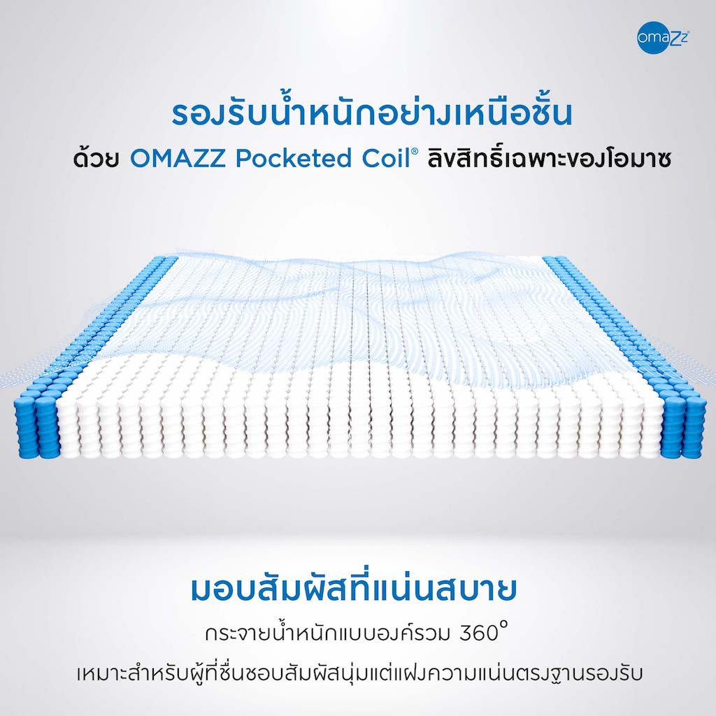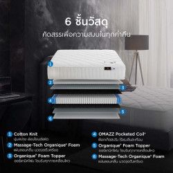 อิ่มเอมใจไปกับการพักผ่อนที่เปี่ยมด้วยคุณค่าจากธรรมชาติพร้อมเทคโนโลยีที่ Omazz ได้สั่งสมประสบการณ์และพัฒนาจนเกิดเป็นนวัตกรรมการฟื้นฟูร่างกายอย่างสมบูรณ์แบบ ที่นอน Omazz® รุ่น Floy มอบการรองรับด้วย Omazz Pocket coil พ็อกเก็ตสปริงที่ถูกจัดวางให้การรองรับสรีระมีความสมดุลเป็นธรรมชาติที่สุด มีสัมผัสแน่นสบาย ลูกสปริงทำงานอย่างอิสระ ไร้แรงสั่นสะเทือน และช่วยกระจายน้ำหนักแบบองค์รวม 360 องศา เสริมชั้น Organique Foam Topper โฟมออร์แกนิคที่ช่วยสลายแรงกดทับและโอบรับสรีระในทุกการเคลื่อนไหว ทั้งให้คุณหลับสบายขึ้นอีกระดับด้วย Massage-Tech Organique® foam ที่ได้รับแรงบันดาลใจจากธรรมชาติสู่การออกแบบผิวสัมผัสเป็นลอนคลื่น มอบความรู้สึกเหมือนได้นวดผ่อนคลายสรีระอย่างนุ่มนวลเพื่อเติมเต็มค่ำคืนแห่งการพักผ่อน ที่นอนรุ่น Floy จึงเป็นหนึ่งในคอลเลคชัน Seasonspring™ ที่จะมอบการฟื้นฟูสุขภาพ และช่วงเวลาแห่งความสุข ตามแบบฉบับของ Omazz ได้อย่างสมบูรณ์แบบ |
