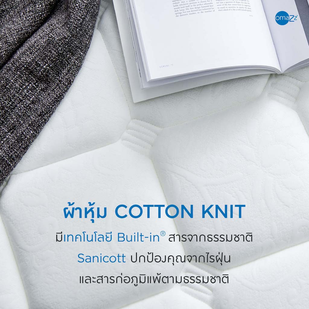 ผ้าหุ้ม : ผ้าหุ้มคอตตอน Knit เคลือบสาร Sanicott สารสกัดจากธรรมชาติ Sanicott ความหนา 11.5 นิ้ว รับประกัน 8 ปี |