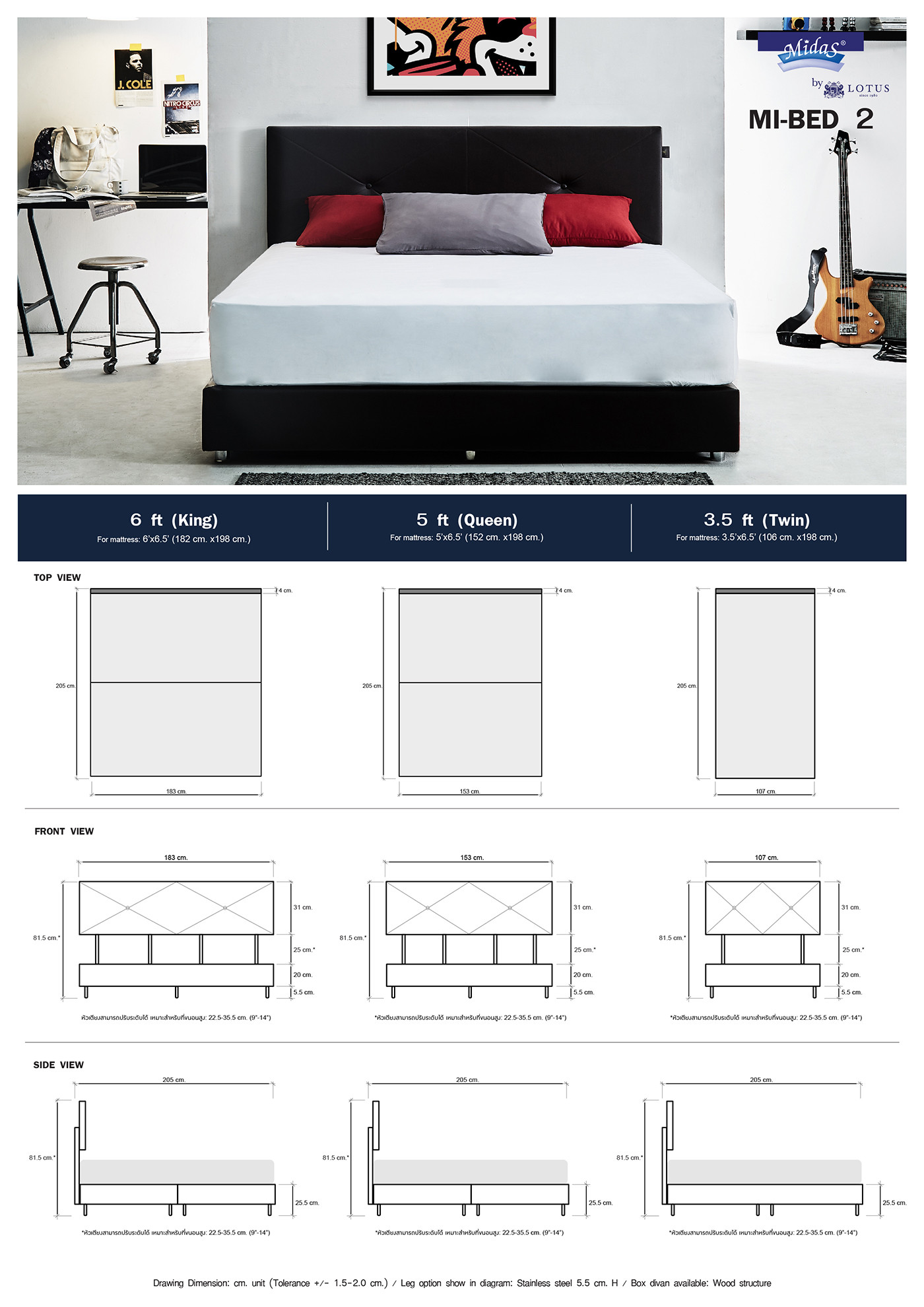 New Bed Frame : Mibed 2 from MIDAS. Highlighted with Bed Design Collection from Midas, the charm of luxury with imported Microfibre covers. There are many colors to choose.Available with 3 sizes 3.5 ft., 5 ft., 6 ft.