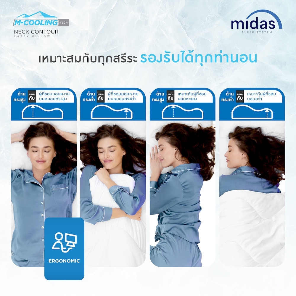 The Midas M-Cooling Neck Contour is meticulously designed to perfect your sleep health. features an ergonomic shape that provides precise support to your head, neck, and shoulders. It helps to align the spine, relieve pressure points, reduce aches, and prevent the long-term effects of office syndrome.