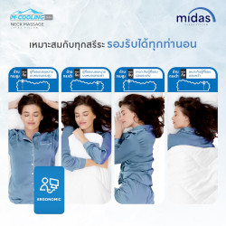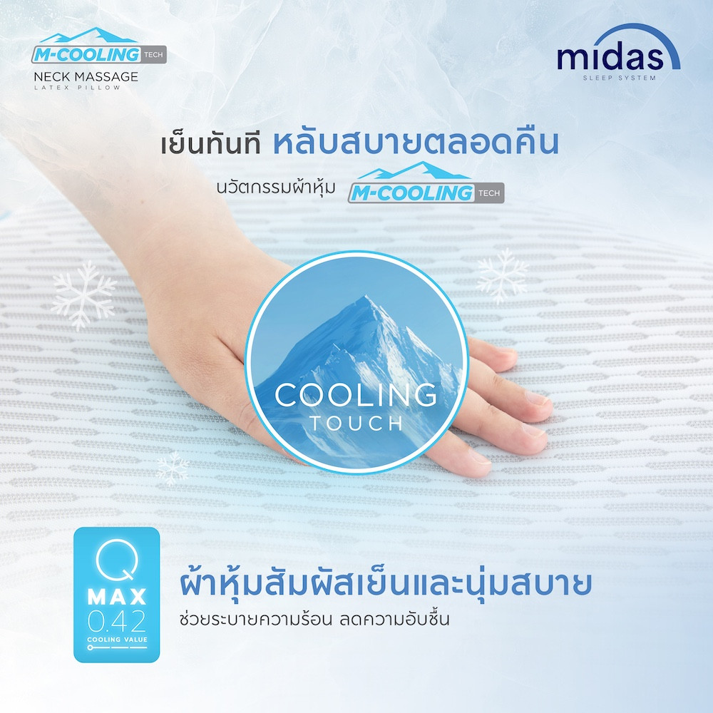 The M-cooling fabric cover completes your relaxation experience with an instant cooling sensation. It dissipates heat, reduces stuffiness around the head and neck, and absorbs sweat, helping you to fall into a deeper sleep. It is ideal for hot sleepers or those who prefer a cool rest without overly cold air conditioning.