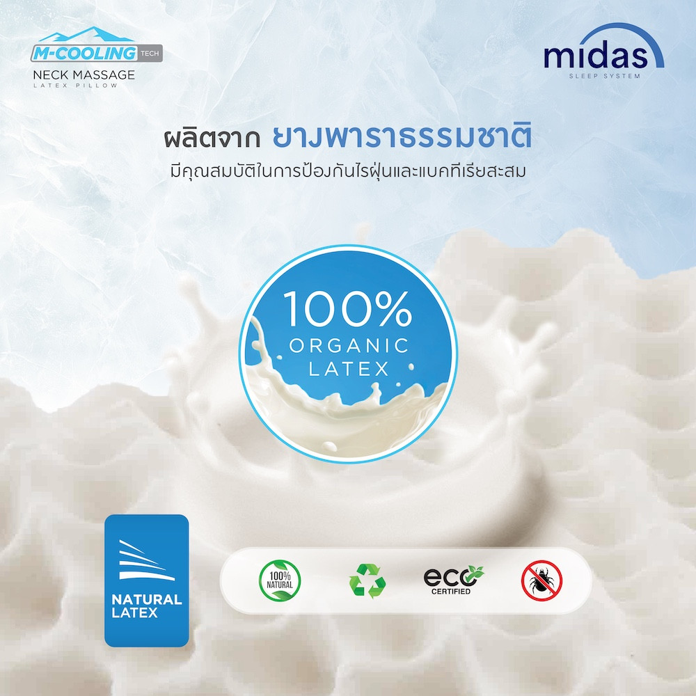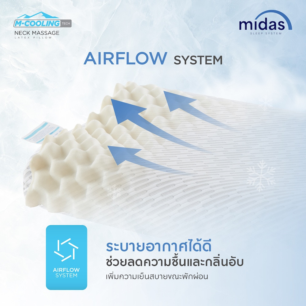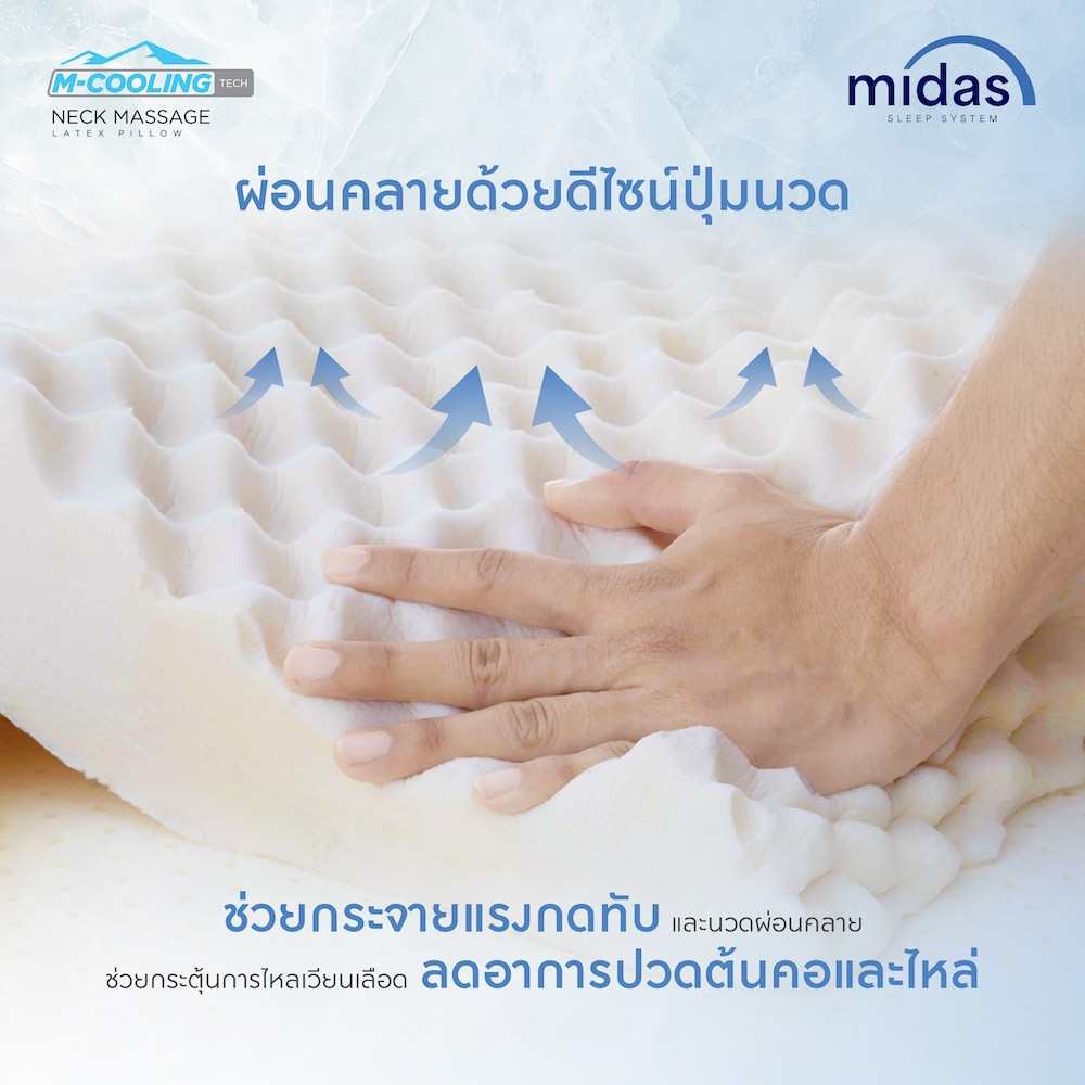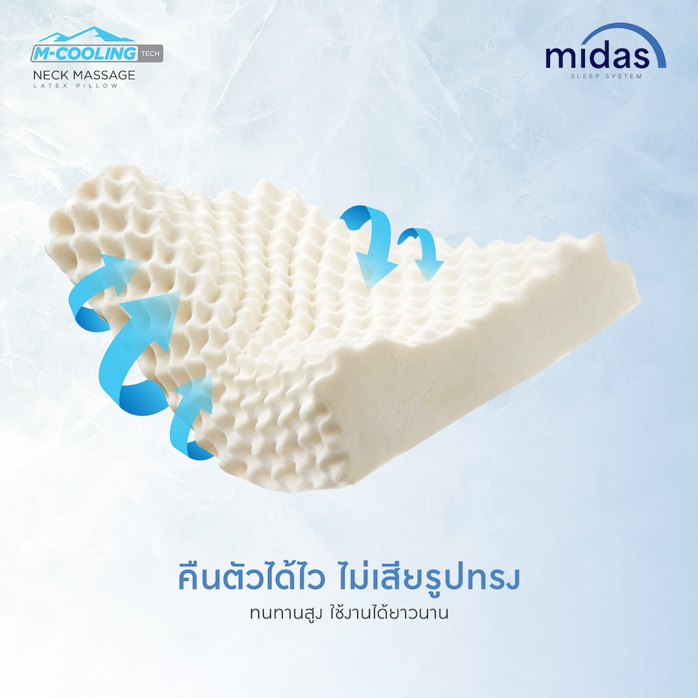 The M-cooling Neck Massage Pillow is made from high-quality, flexible latex that provides excellent weight support and balanced recovery. It is durable and maintains its shape for long-lasting use. The latex also features an airflow system, which provides superior airflow to reduce moisture and excess heat for an airy, comfortable sleep in any weather.