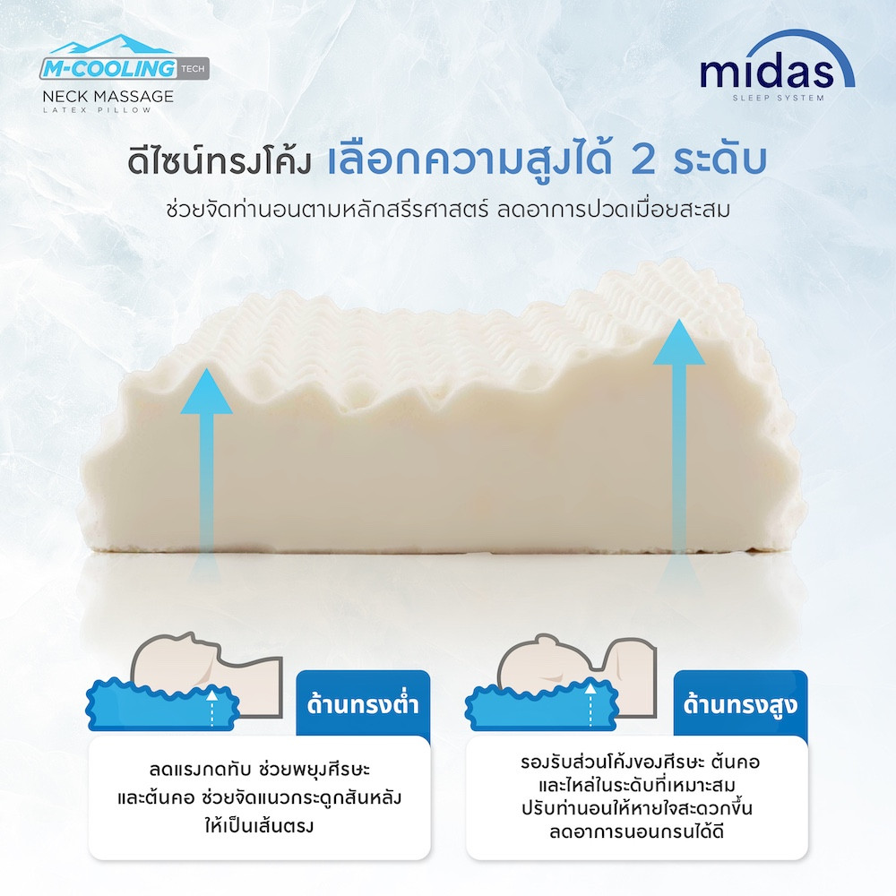 Sleep soundly every night with the M-cooling Neck Massage Pillow. This pillow is made from 100% natural latex with a soft, massaging surface that provides a gentle massaging effect to relieve tension in the head and neck for all-night relaxation. Featuring a dual-height design, it provides personalized support that helps to reduce snoring and promotes a longer, deeper sleep.