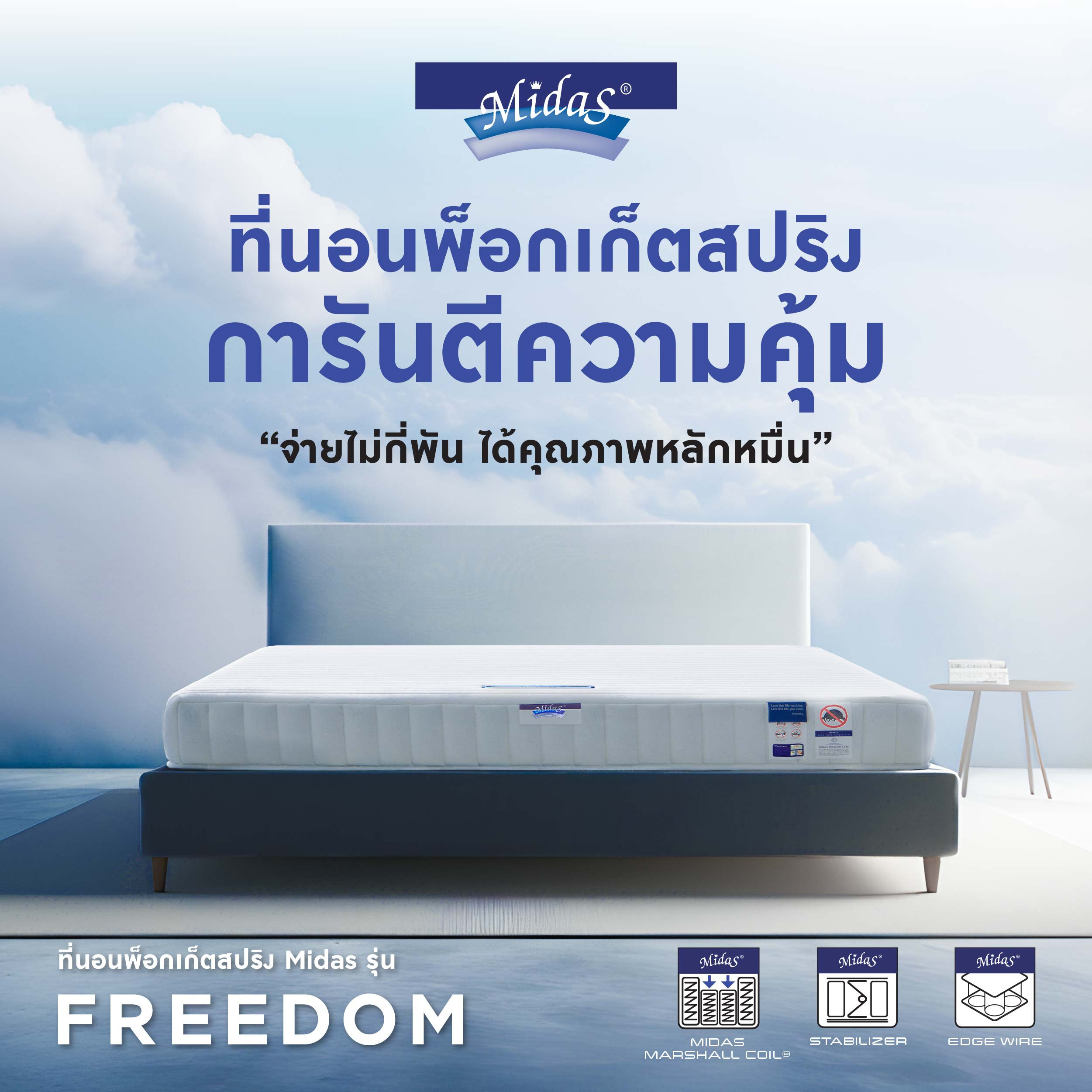 Midas mattresses, toppers, and beds – international quality with chic, modern design. Premium materials for comfortable sleep. Free delivery at Mattress City.