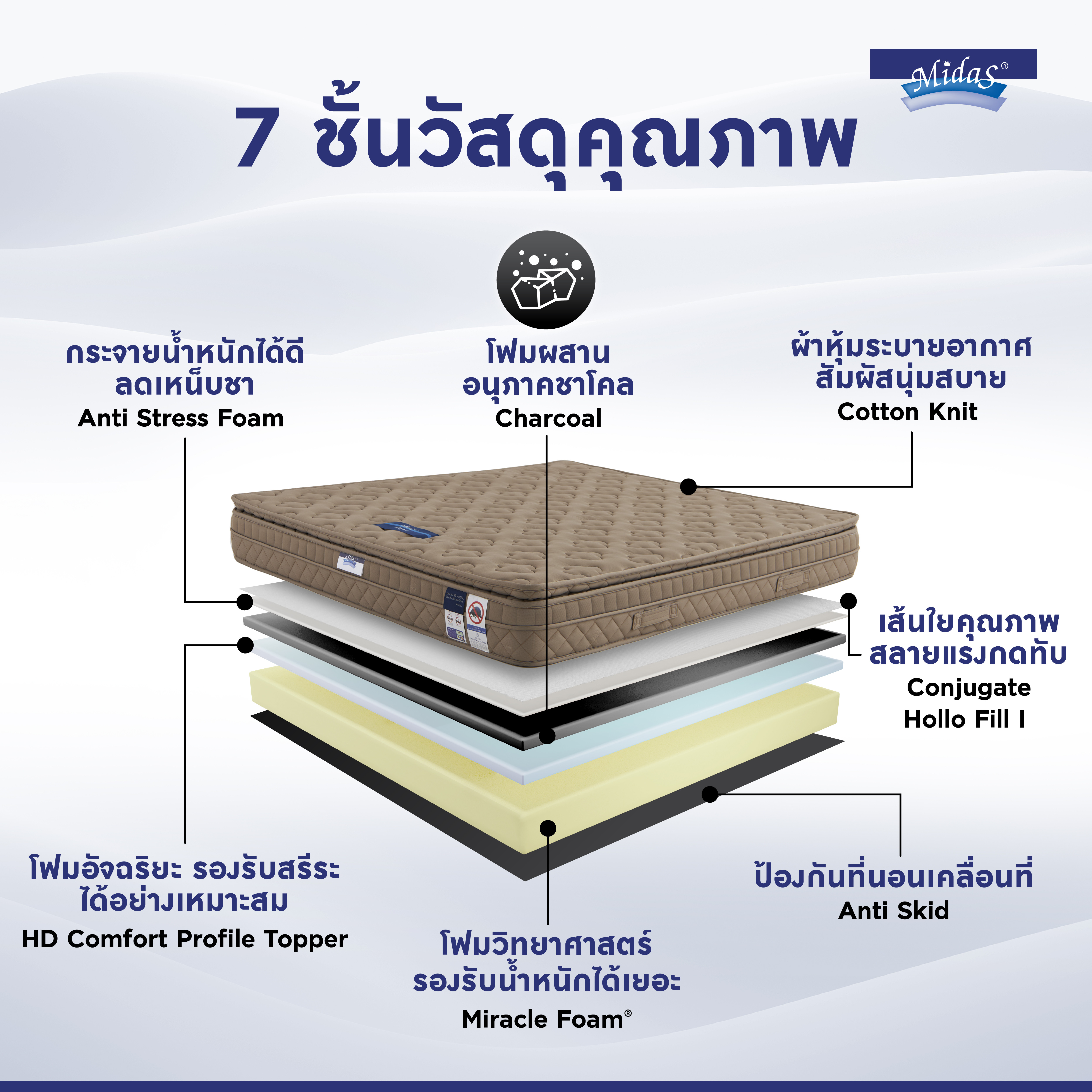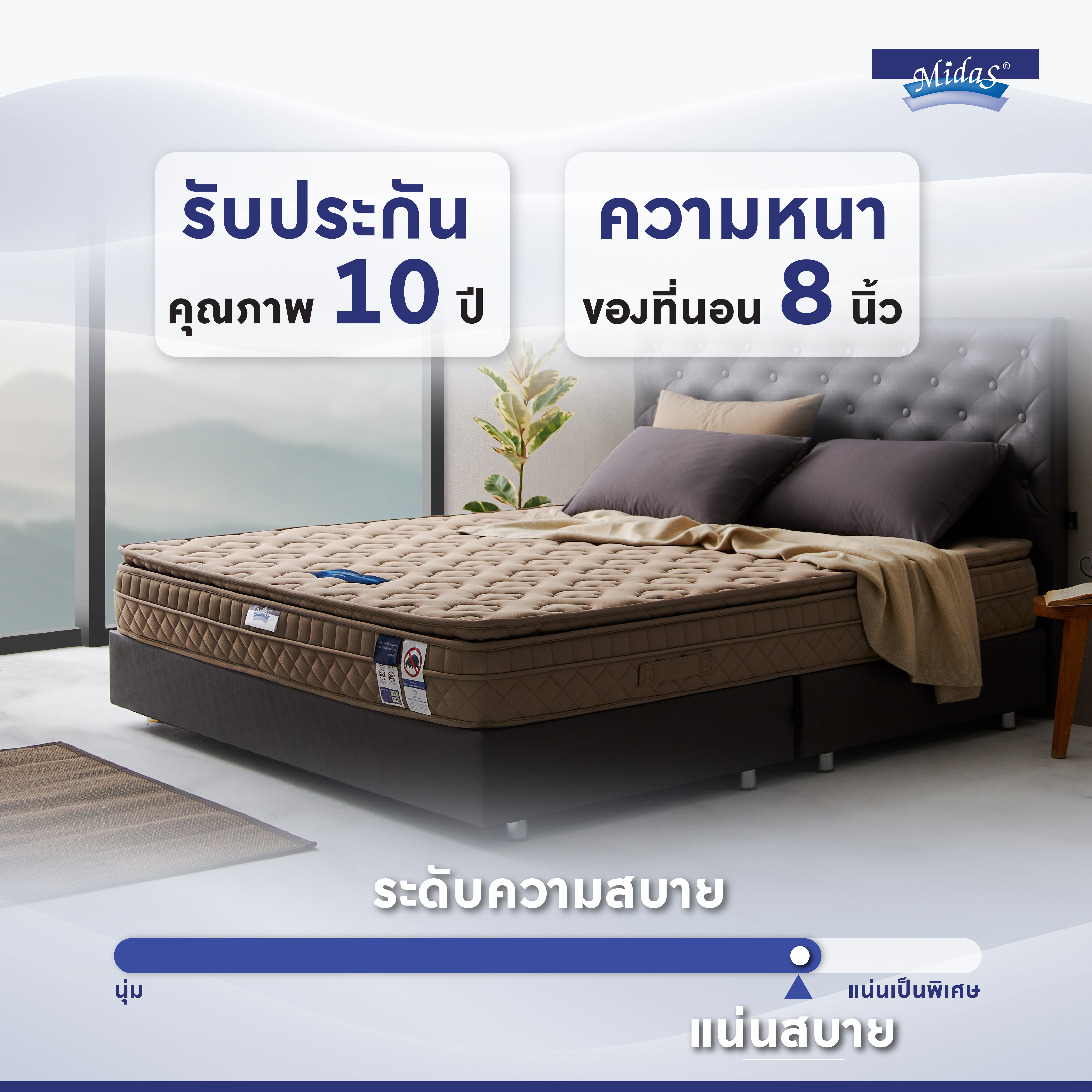 Midas mattresses, toppers, and beds – international quality with chic, modern design. Premium materials for comfortable sleep. Free delivery at Mattress City.