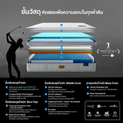 Golf is an art of rotational precision that places immense strain on the shoulders, lower back, and hips. Athletes require rest that transcends comfort — rest that truly restores. Engineered with 7 Zoned Pocketed Coil technology, the mattress delivers targeted support and precise spinal alignment, alleviating pressure on the hips and lumbar region to enable deep muscular recovery. The Royal Cloud Topper combined with dual layers of LatexLux offers a plush, cloud-like sensation, evenly distributing weight and pressure across the shoulders, back, and hips, enhancing circulation and easing inflammation. The addition of Organique Foam – Green Tea Infused further elevates hygiene and freshness for a healthier sleep surface.