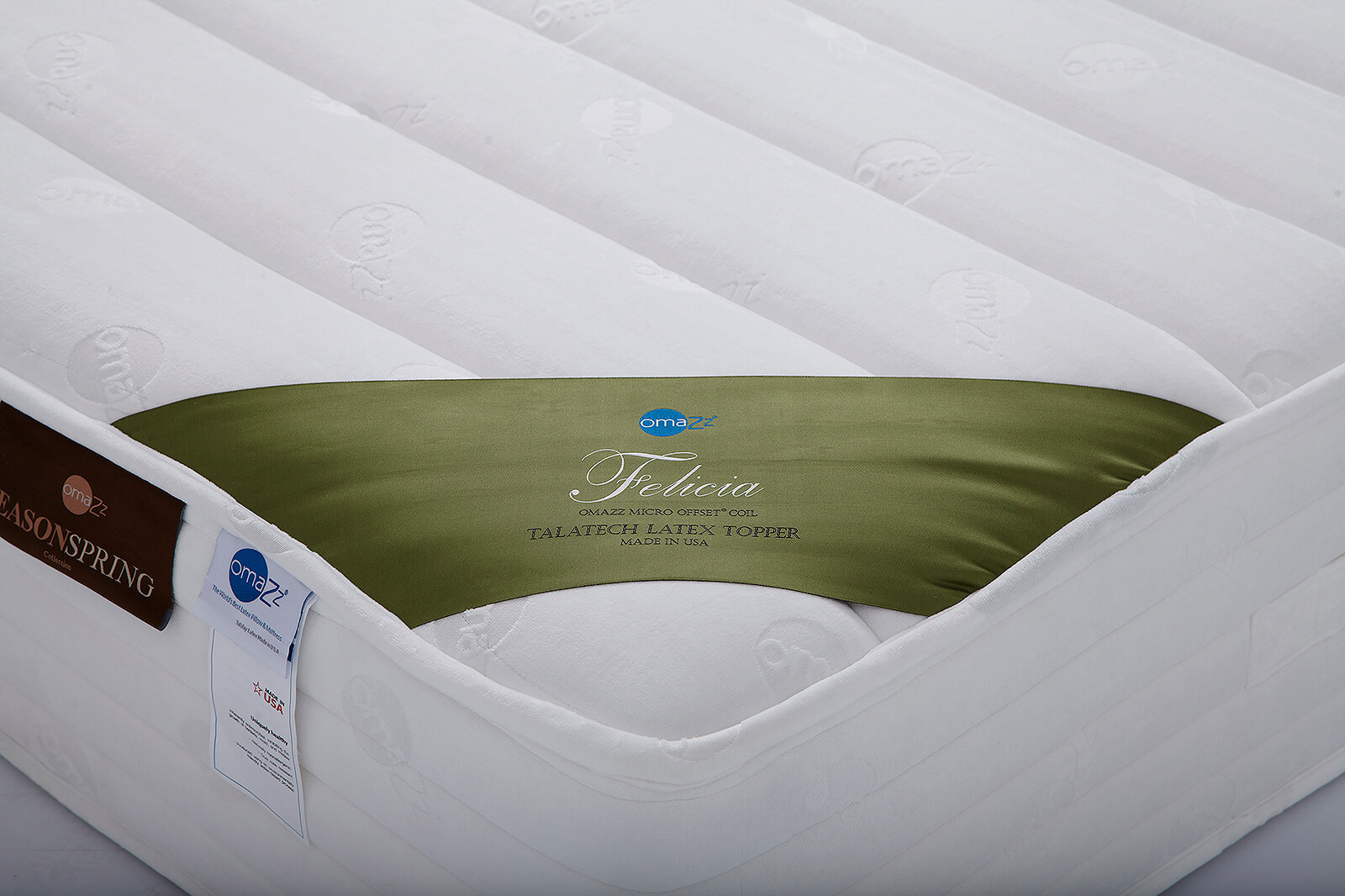 The Seasonspring™ collection introduces a new complementary range of products to the already renowned full talalay latex line. The key product differences lie within the use of an innerspring at the base of the design, rather than a talalay latex core. The favorite Omazz® Talatech™ latex topper remains at the top of the design providing for full air-circulation and reducing any pressure points on the body. The Seasonspring™ line is the perfect solution for those who find the full Talatech™models too soft for their liking. |