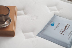 The Filano gives the right blend of stability and exibility to sleep deeply and wake up well rested. It features 44 ILD Talatech™ Latex topper at 2.5 cm. with Super Bonnel Coil system and Sanicott pre-treated cotton velour cover providing permanent protection against dust-mites and mildew. Developed specifically for superior support across the surface of the mattress, your body weight is effectively absorbed, in turn eliminating any tension or pressure points. The absolute balance in Filano’s structure was developed to please your every sleep needs thus guaranteeing true relaxation for years to come.