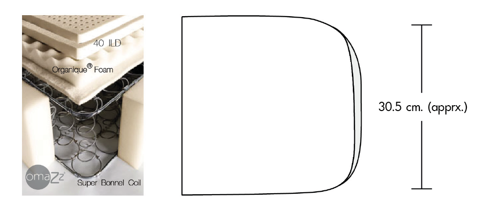 The Froyd Nardin, featuring an outstanding marriage of the top system of an exclusive Talatech™Latex topper (40ILD) and the vigorously f irm Super Bonnel Coil base, is constructed to provide for modern oriental sleeping experience. The topper layer, at 3.5 cm., introduces the new height in full air circulation, while minimizing stress points on the body. The Froyd Nardin is ideal for the stomach and back sleepers promising long restorative sleep.