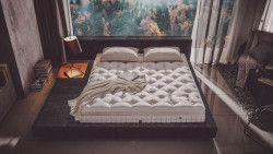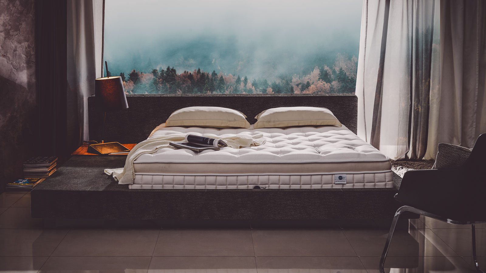 Natural Italian Merino wool is hand tufted under cover fabric made of organic cotton, the Coil-in-Coil support system of the Fulliner Collection works in 5 unique zones.