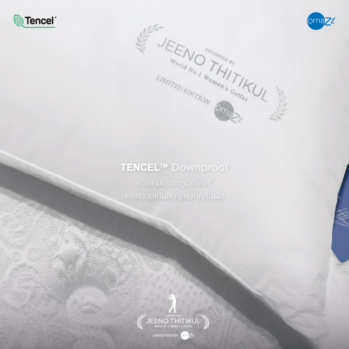 Inspired by the remarkable journey of Jeeno Thitikul, the World No.1 professional golfer whose pursuit of greatness is defined by unwavering focus and inner tranquility, Omazz® Prestigia is meticulously crafted to embody the perfect harmony between softness and stability — much like the precise rhythm of a golf swing. More than just a pillow, it is a masterpiece of restorative art that bridges the spirit of an athlete with the science of deeply rejuvenating sleep.
