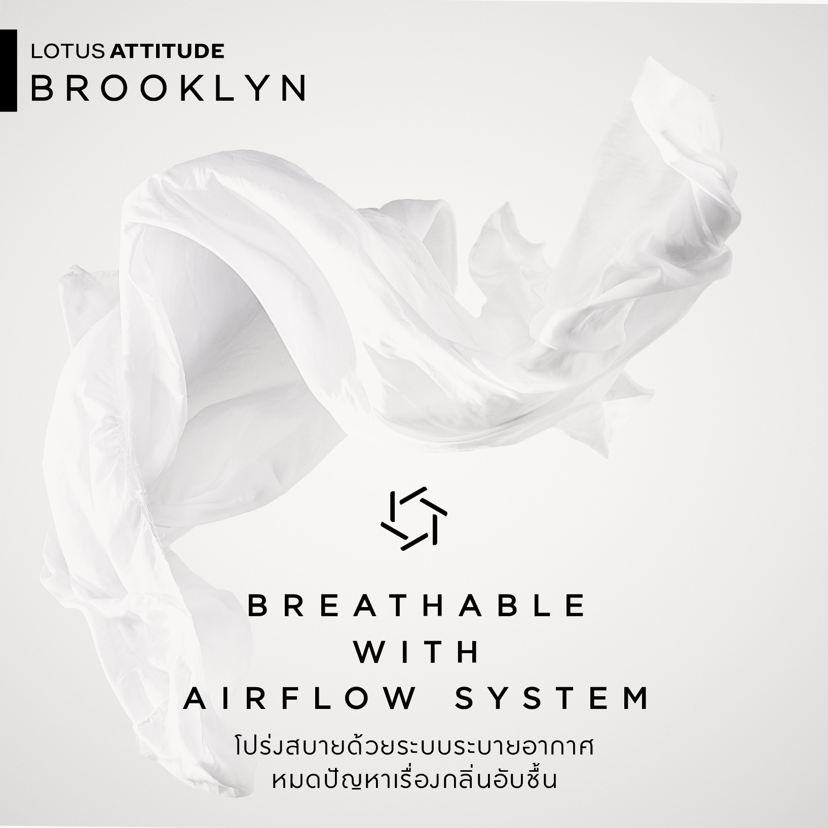หมอนอิง LOTUS ATTITUDE รุ่น Brooklyn Cushion มอบผิวสัมผัสเรียบเนียนไร้รอยยับด้วยเทคโนโลยีผ้าถนอมผิว Anti-aging MicroSilk ทอด้วยความละเอียด 990 เส้น/10 ตร.ซม. ให้สัมผัสที่อ่อนโยนต่อผิว ไม่เกิดริ้วรอยที่เกิดจากการกดทับหรือเสียดสีกับผ้าหุ้ม พร้อม Aloe Vera Tech ที่ปรับผิวสัมผัสของเนื้อผ้าให้นุ่มลื่นสบายคล้าย Aloe Vera Gel พร้อมเสริมความเย็นบนผิวสัมผัสของผ้าให้เย็นยิ่งขึ้น และยังมีโครงสร้างระบายอากาศของผ้าหุ้ม Airflow System ช่วยแก้ปัญหาเรื่องความอับชื้น ให้มุมพักผ่อนของคุณสดชื่นและผ่อนคลายอยู่เสมอ ทั้งยังช่วยป้องกันการสะสมของไรฝุ่นที่เป็นปัญหาของสุขภาพได้อีกด้วย