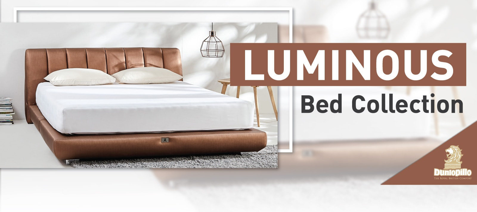 เตียงนอน Dunlopillo รุ่น Luminous ผ้าหุ้ม Modren Silk ฐานเตียงสูง 25 ซม. เพิ่มอรรถรสแห่งความฝันของคุณอย่างไร้ขีดจำกัดพร้อมเนรมิตห้องนอนของคุณให้สวยหรูดูทันสมัย น่าหลงใหลในทุกสัมผัสเตียงมีคุณภาพ