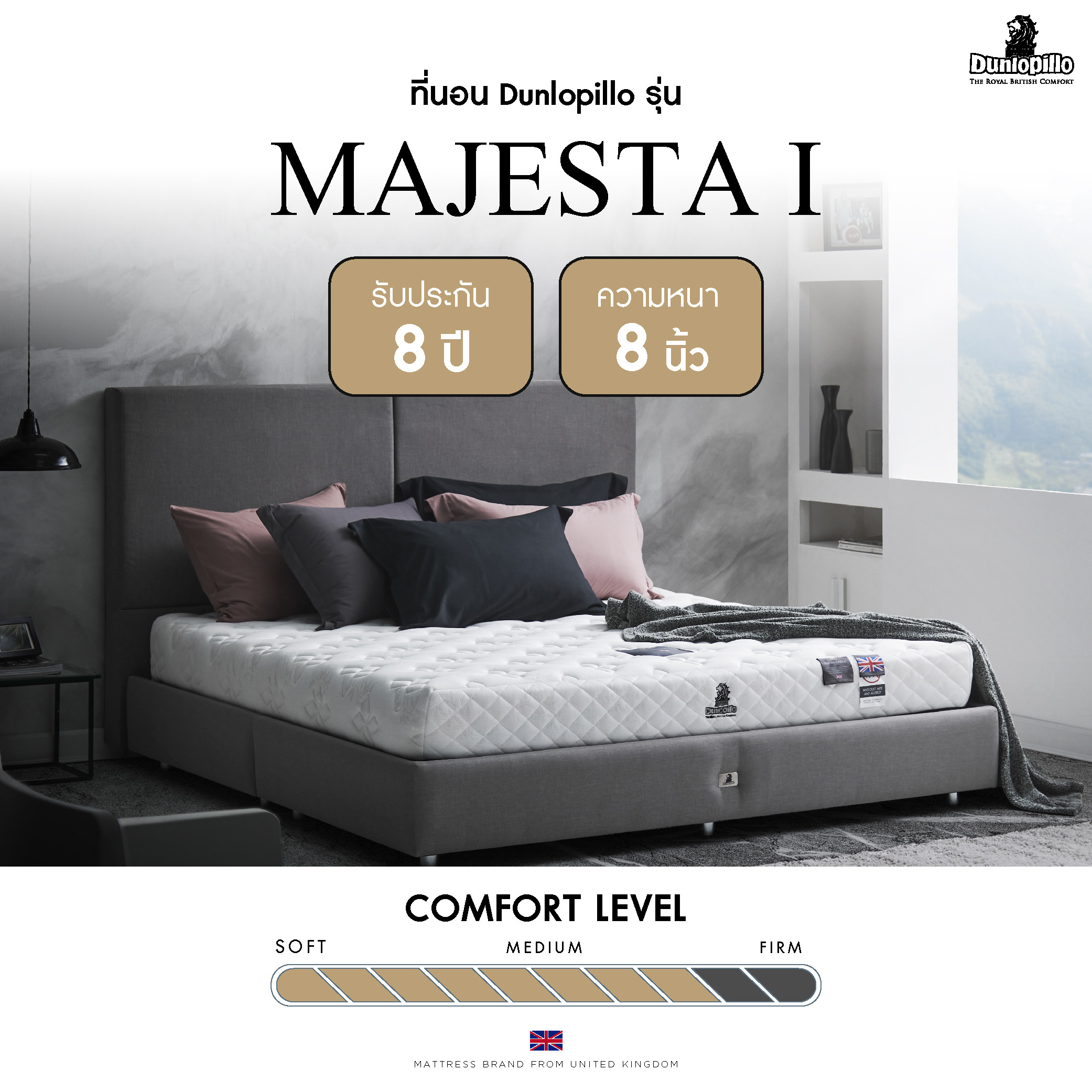 ที่นอนโฟมวิทยาศาตร์เสริมด้วยยางพารา Dunlopillo รุ่น Majesta l นุ่มปานกลาง Firma Flex Plus ฐานโฟมวิทยาศาสตร์ที่ผ่านกระบวนการขึ้นรูปแบบพิเศษเพื่อให้ตัวโฟมมีสัมผัสที่นุ่มแน่นกำลังดี เหมาะสมกับผู้นอนทุกสรีระ สามารถลดแรงกดทับและกระจายน้ำหนักจากร่างกายไปสู่ที่นอนได้อย่างดีเยี่ยม เสริมด้วยยางพาราเกรดพรีเมียมจากประเทศเบลเยี่ยม ที่จะช่วยรองรับสรีระของคุณได้อย่างดี