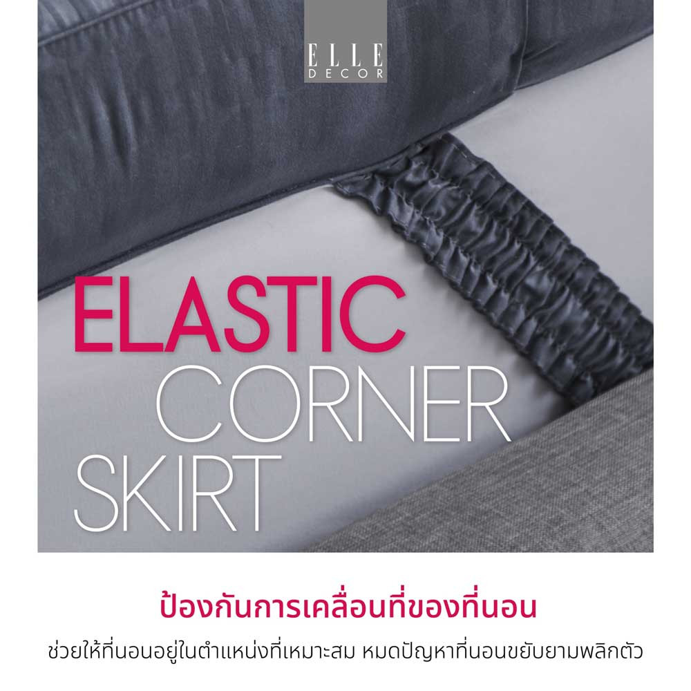 Elastic Corner Skirt: ป้องกันการเคลื่อนที่ของที่นอนช่วยให้ที่นอนอยู่ในตำแหน่งที่ถูกต้องในยามที่พลิกตัวหรือเปลี่ยนท่านอน