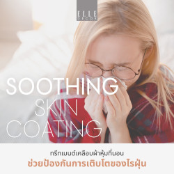 สารเคลือบเพื่อสุขภาพ : Skin-Soothing Coating : ทรีทเมนท์เคลือบผ้าหุ้มที่นอนด้วยสารจากธรรมชาติ ช่วยป้องกันการเติบโตของไรฝุ่นอย่างถาวร และยับยั้งการสะสมของแบคทีเรียได้อย่างสมบูรณ์ ซึ่งเป็นต้นเหตุของอาการภูมิแพ้