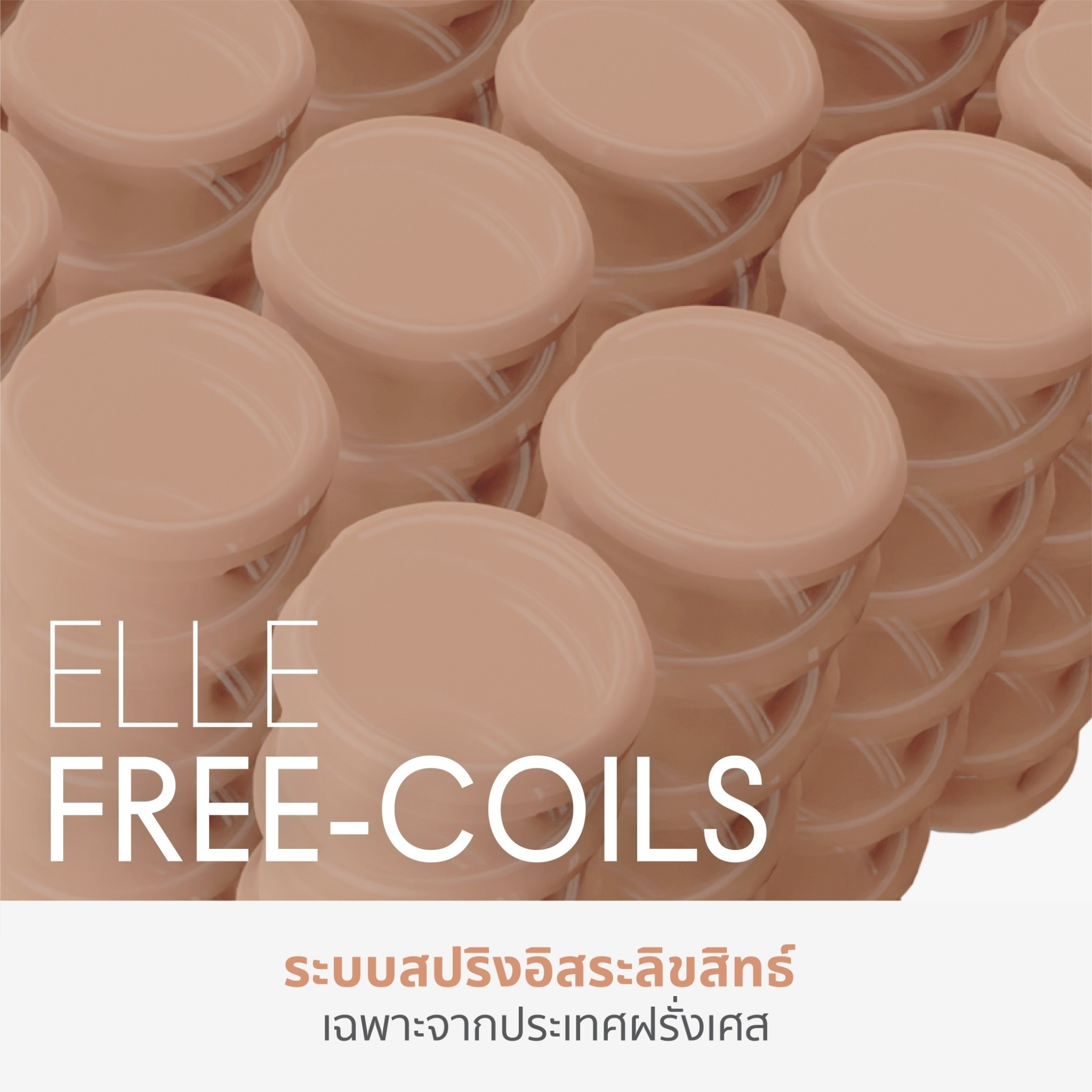 Elle Free-Coils : ระบบสปริงอิสระลิขสิทธ์เฉพาะจากประเทศฝรั่งเศส ลูกสปริงแต่ละลูกแบ่งหน้าที่การทำงานอย่างอิสระ ช่วยปรับสมดุลรองรับสรีระได้อย่างเป็นธรรมชาติ รองรับน้ำหนักได้อย่างสมบูรณ์แบบ ป้องกันการสั่นเคลื่อนไหวรบกวนจากการพลิกตัวของคู่นอนได้อย่างมีประสิทธิภาพ