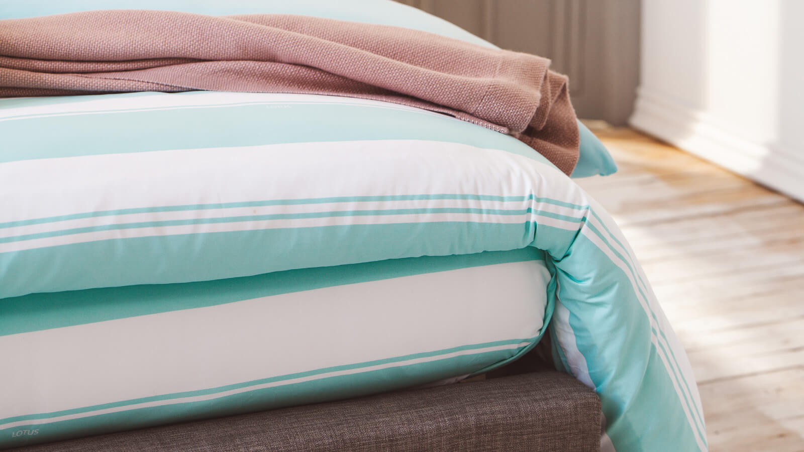ชุดผ้าปูที่นอนโลตัส รุ่น MELBOURNE ผลิตจากผ้าไมโครเท็กซ์คุณภาพ 100% ความละเอียด 490 เส้นด้าย/10 ตารางเซนติเมตร มีทั้งหมด 3 ขนาด ได้แก่ 3.5 ฟุต, 5 ฟุต, 6 ฟุต