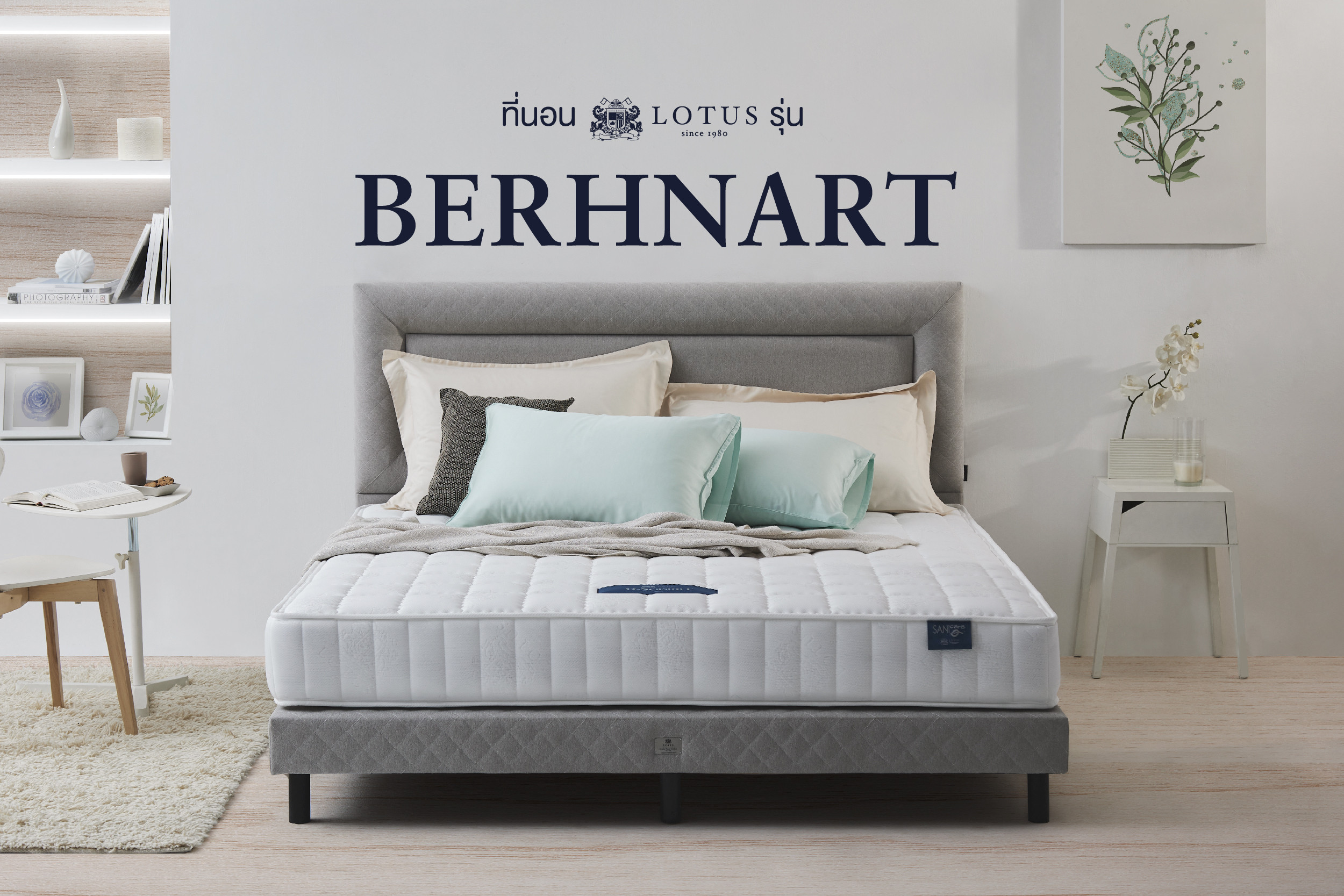 ใหม่ ที่นอนโฟม สปริง รุ่น Berhnart จาก LOTUS มาพร้อมความพิเศษด้วยการออกแบบที่คิดคำนวณทิศทางการกระจายน้ำหนักมาเป็นอย่างดี ที่นอนโลตัสรุ่น Berhnart จึงช่วยลดอาการปวดหลังที่เกิดจากการสะสมแรงกดทับจากร่างกายได้อย่างตรงจุด อีกทั้ง การผสานแผ่นรองหลังไว้ที่พื้นผิวของที่นอนก็ยังช่วยนวดเบาๆ เพื่อความผ่อนคลายยิ่งขึ้นในบริเวณที่มักจะพบอาการเมื่อยล้า เพื่อความสบายสูงสุดของคุณ มีสินค้า 3 ขนาด 3.5 ฟุต, 5 ฟุต, 6 ฟุต ที่นอนมีความหนา 9 นิ้ว หลับสบายพร้อมรับประกัน 5 ปี