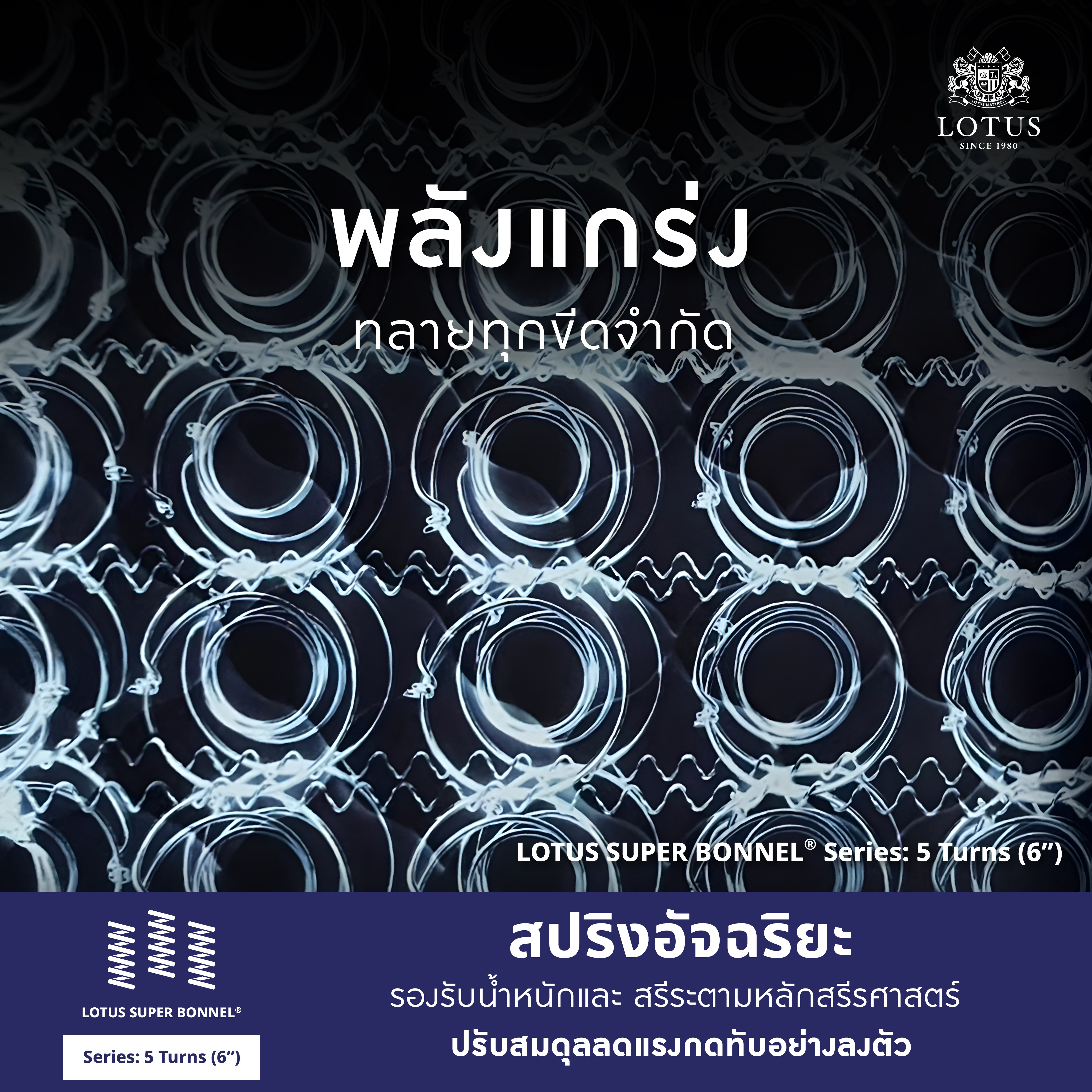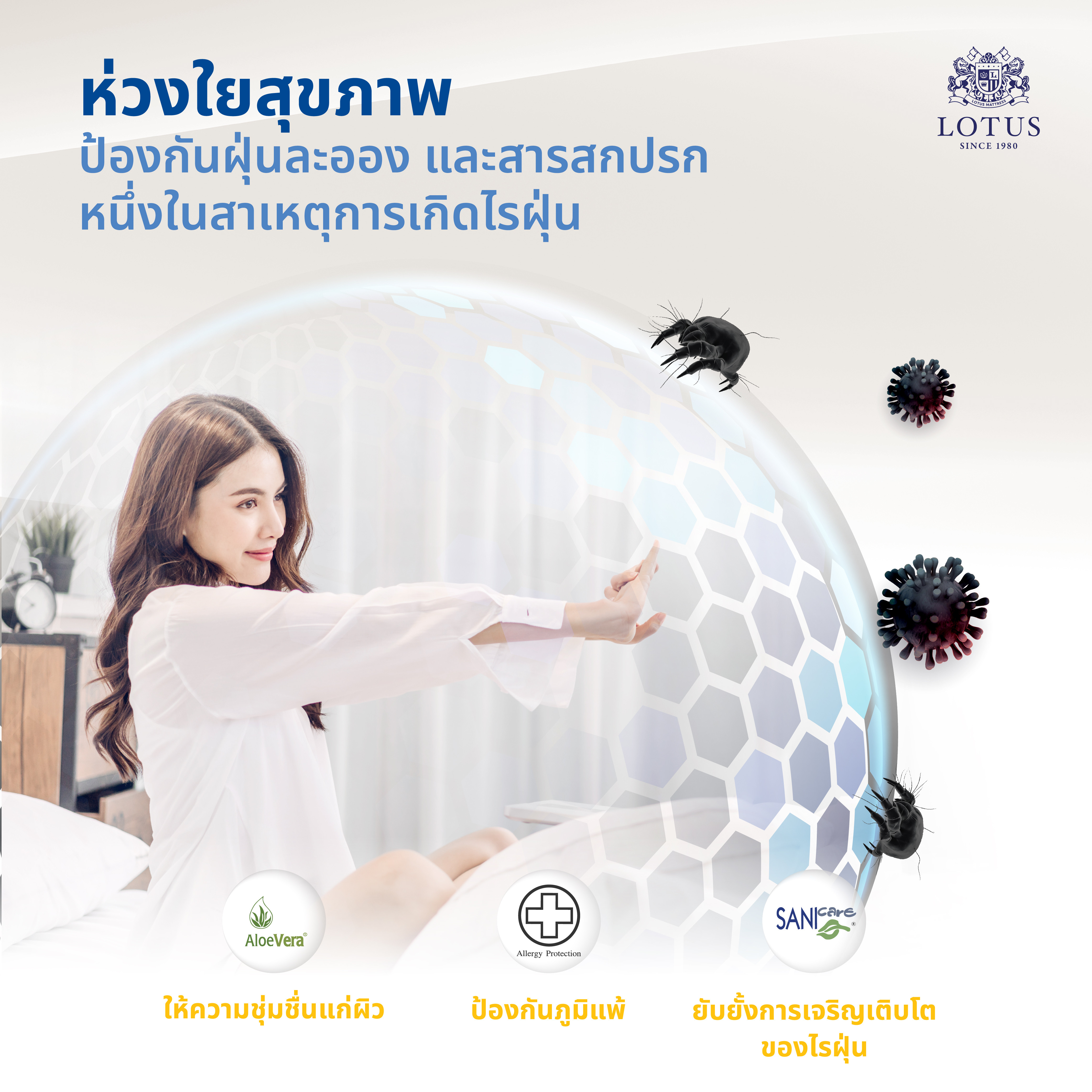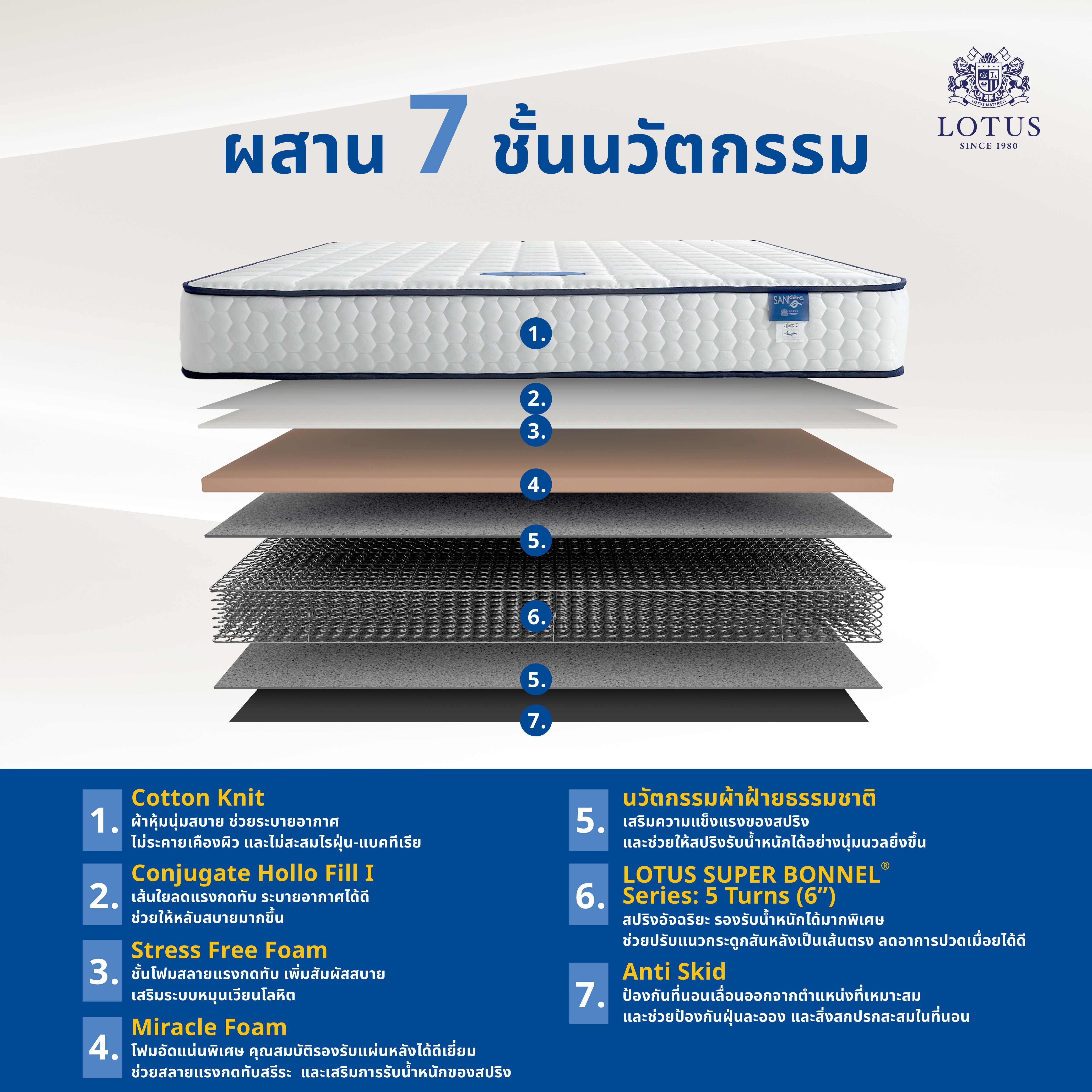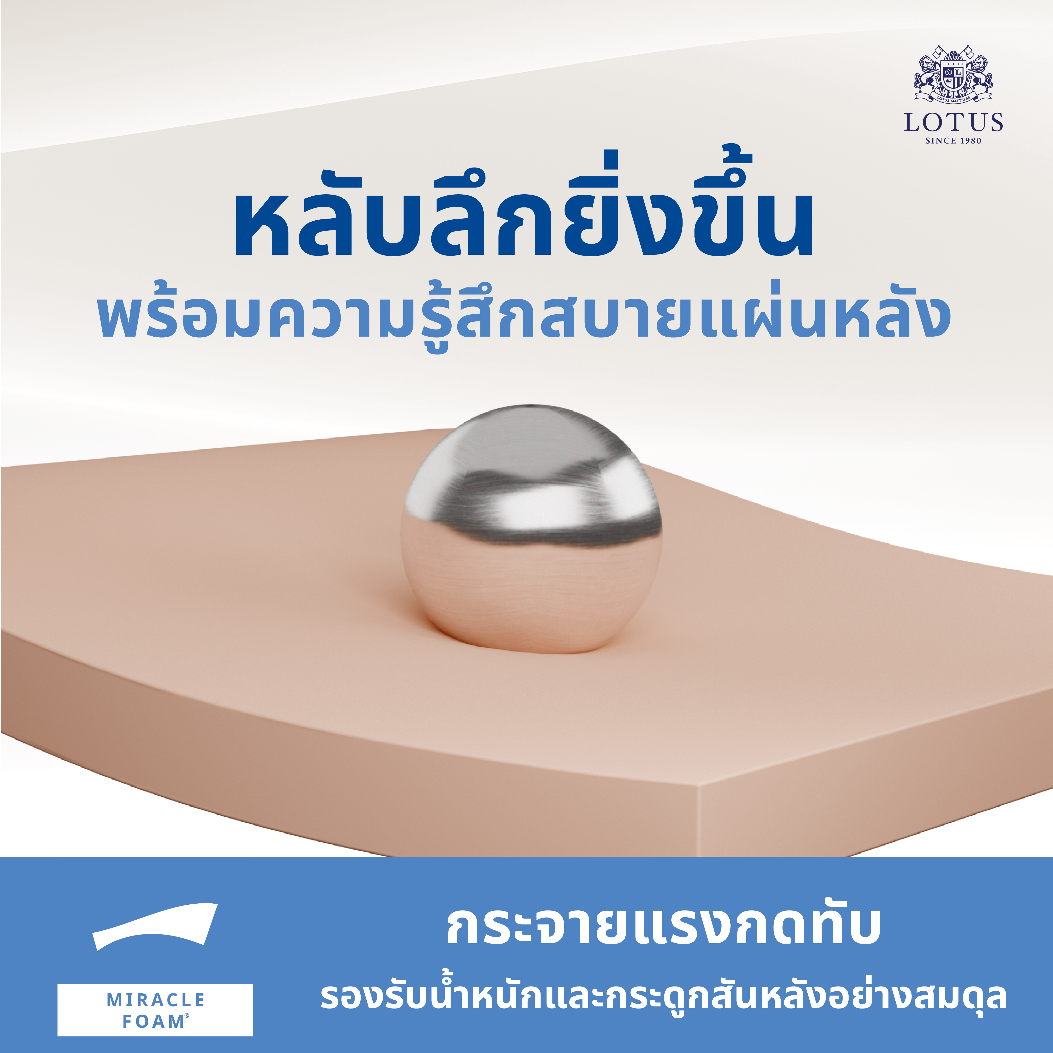 ที่นอน Lotus แบรนด์คุณภาพระดับโลกจากไทย เทคโนโลยี MiracleFoam โฟมอัดแน่นพิเศษ Microlatex มาตรฐานเบลเยียม Anti-Skid กันลื่น Stressfree ลดแรงกดทับ รับประกันยาว 12 ปี ผ่อน 0% ส่งฟรี ที่ Mattress City