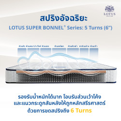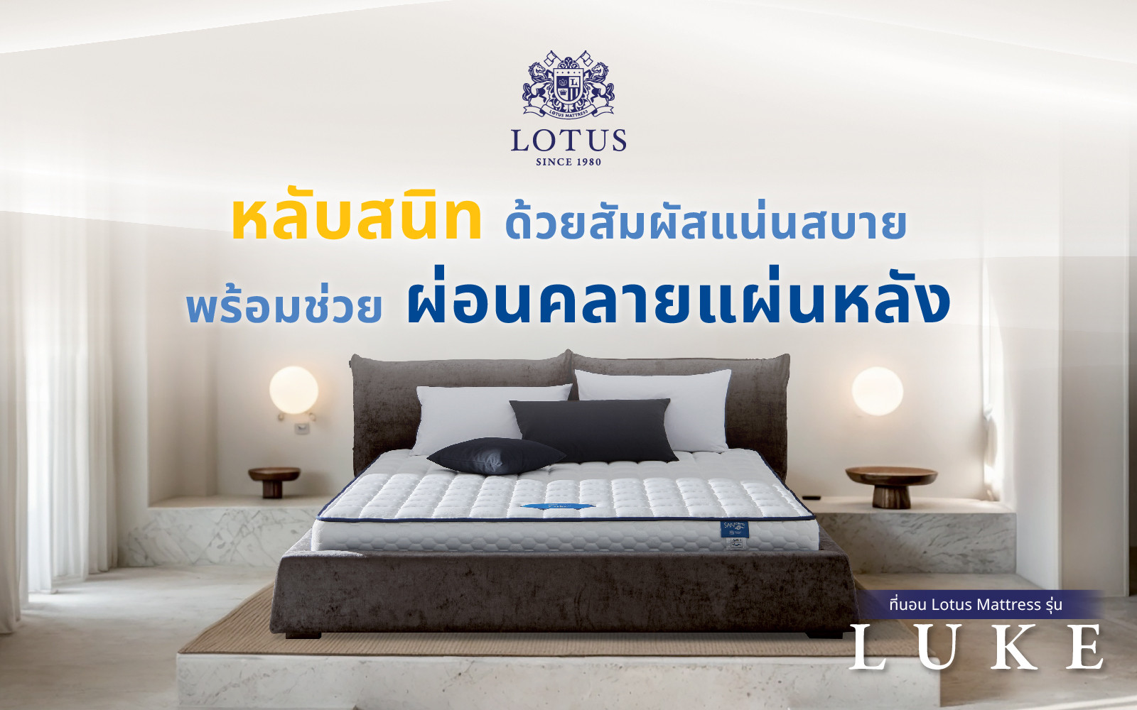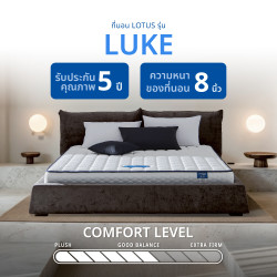 ที่นอน รุ่น LUKE จาก LOTUS Mattress มอบสัมผัสแน่นสบายด้วยระบบสปริงอัจฉริยะ LOTUS Super Bonnel® Series: 5 Turns (6 นิ้ว) ที่มีความแน่นพิเศษ เหมาะสำหรับการรองรับน้ำหนักที่มากและยังสามารถลดแรงกดทับได้อย่างลงตัว มาพร้อมกับสัมผัสยืดหยุ่นและนุ่มนวลสบายของ HD Comfort Foam ที่ออกแบบมาเพื่อโอบอุ้มสรีระทุดสัดส่วน ทำให้นอนแล้วรู้สึกผ่อนคลายและช่วยบรรเทาอาการปวดเมื่อยได้ดีเยี่ยม