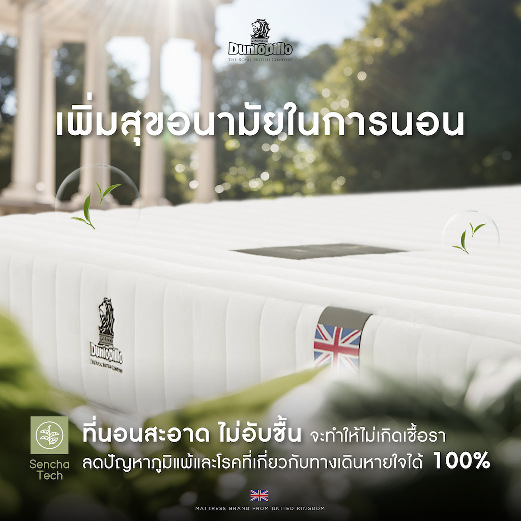 หลับสบายกับ Dunlopillo ที่นอนยางพาราแบรนด์แรกของโลกจากอังกฤษ เทคโนโลยี Talasilver กันไรฝุ่น 2 เท่า กำจัดแบคทีเรีย 99.98% ผ่อน 0% ส่งฟรี ที่ Mattress City